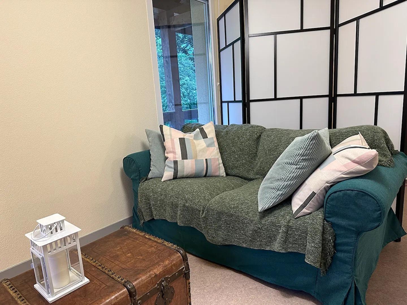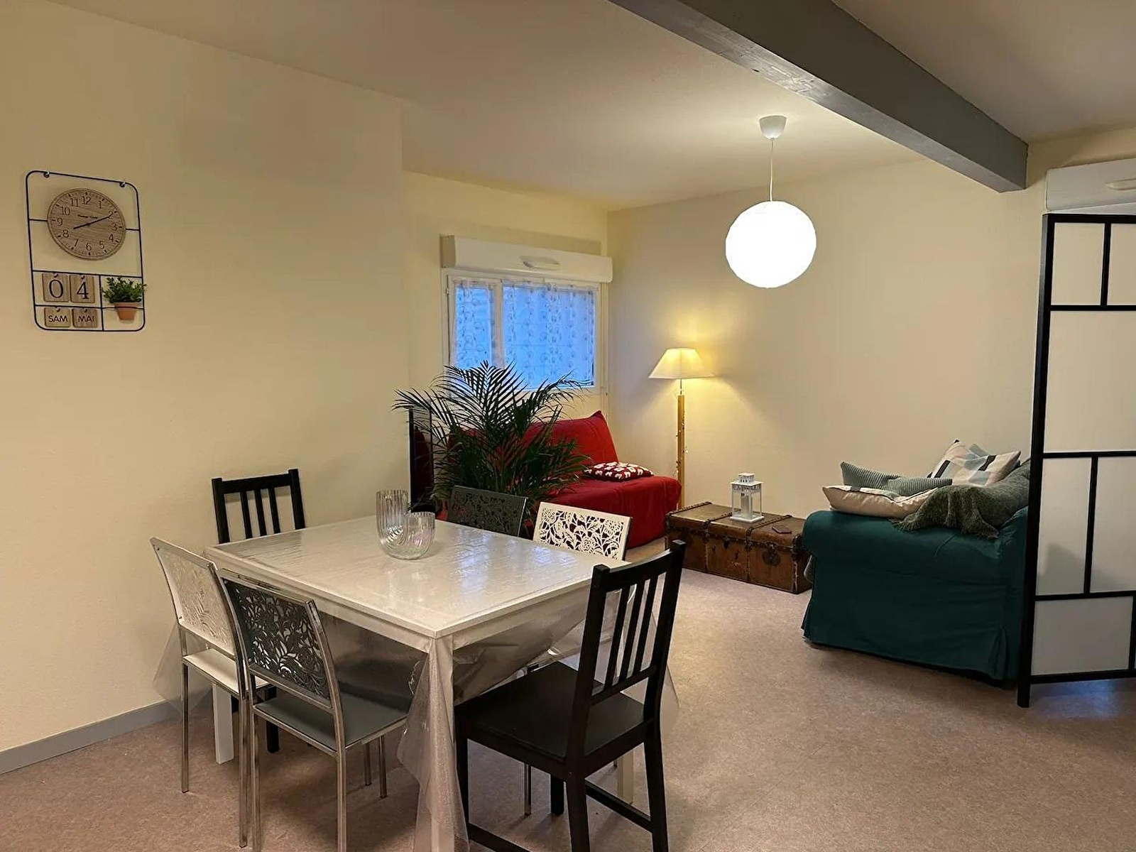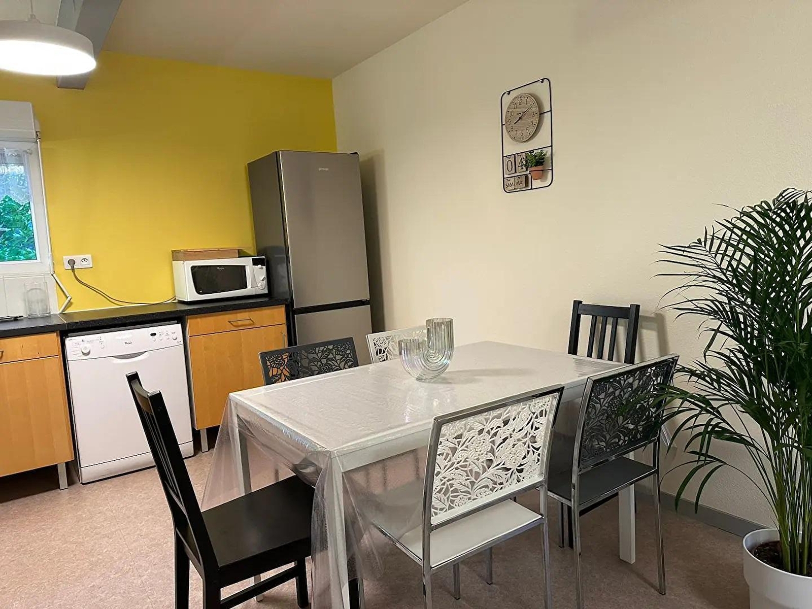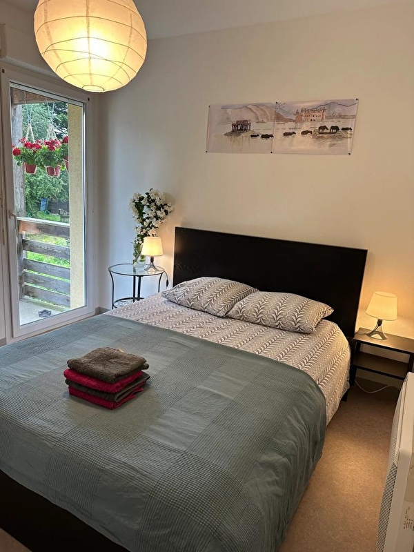 This flat is on the 1st floor of a house and comprises a living room with a fully equipped kitchen, a sitting area with 2 convertible sofas and a TV, a bedroom with 1 double bed (140x190), a bathroom with a bath and a separate toilet. For your comfort, beds will be made on arrival, towels are provided and cleaning is included. Outside, there is a large balcony with garden furniture and a small garden area (not attached) with deckchairs and barbecue. Ideally located, 600 metres from a 1.5-hectare municipal park, which is entirely shaded and has a children's play area, a City Park, a Pump Track, a boules pitch and a community café. The gîte is close to the "voie verte", which provides access to the Louhans and Lons le Saunier cycle routes. The spa town of Lons le Saunier is 3 km away and can be reached by bike. Meals can be prepared by the owner on request and at an additional cost.