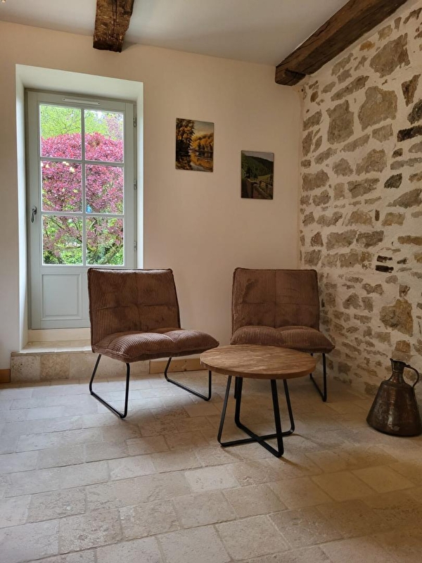 In the heart of the Jura vineyards, in a village classified as a "cité de caractère", come and stay in this renovated, single-storey stone house. It comprises a fully-equipped kitchen, a dining area, a lounge with armchairs and TV, a bedroom with 1 double bed (160*200) and a shower room with WC. For your comfort, the bed will be made on arrival, towels are provided and cleaning is included. Outside, garden furniture and a barbecue are available for you to enjoy on sunny days. Parking in the courtyard in front of the gîte. Ideally situated 10 minutes from Baume-les-Messieurs and Château-Chalon, listed as the most beautiful villages in France, anglers can also indulge their passion 200 metres away in the Seille river. Cyclists and hikers can enjoy a multitude of nature trails through varied landscapes. What if the keys to happiness were to be found here?