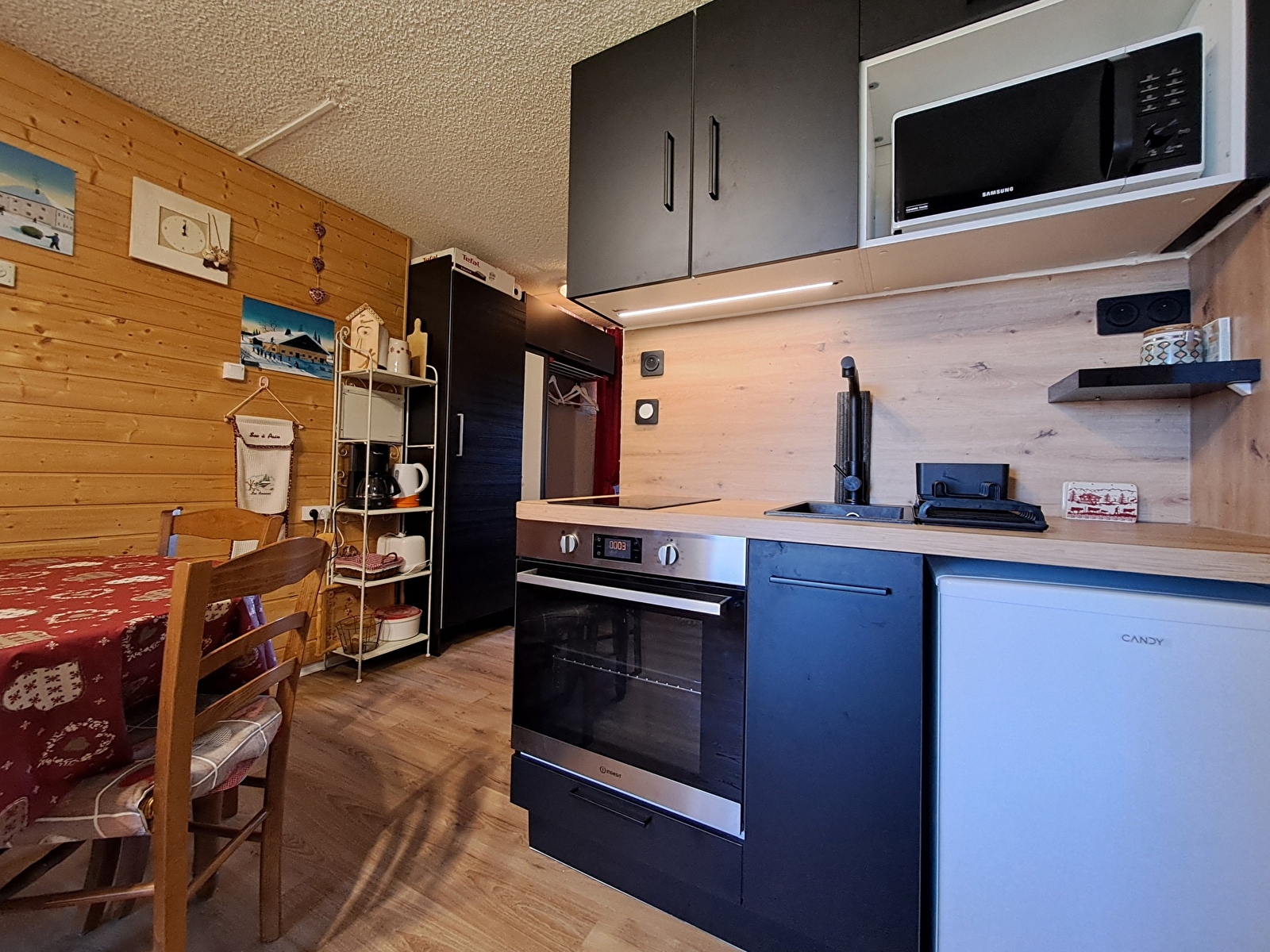 Located in the "Les Crêtets" residence, this 30m² studio on the 3rd floor comprises a main room with kitchen/dining area and 100cm sofa bed. A sleeping area closed by a door with 90cm bunk beds. A mezzanine completes the flat with a 140cm bed. Separate shower room and WC. Private parking at the residence.