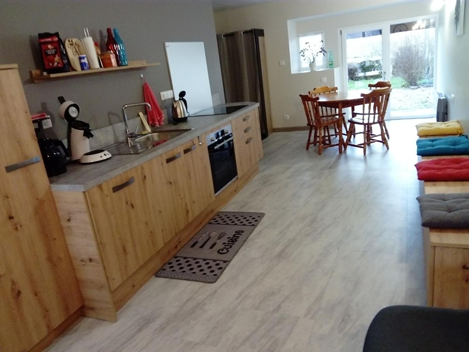 In a small village in the heart of the Lake District, this brand-new gîte adjoins another gîte. On the ground floor, it comprises a living room with a fully equipped kitchen, a sitting area with TV and a separate toilet. Upstairs are bedrooms, each with 1 double bed, and a bedroom with 2 single beds, separate WC, and a shower room with shower cubicle. There is a private terrace with garden furniture and barbecue, and shared grounds with the other gîte. Ideally situated for discovering the Chalain and Clairvaux lakes, the Hérisson waterfalls, the spa town of Lons-le-Saunier and hiking in the surrounding countryside.