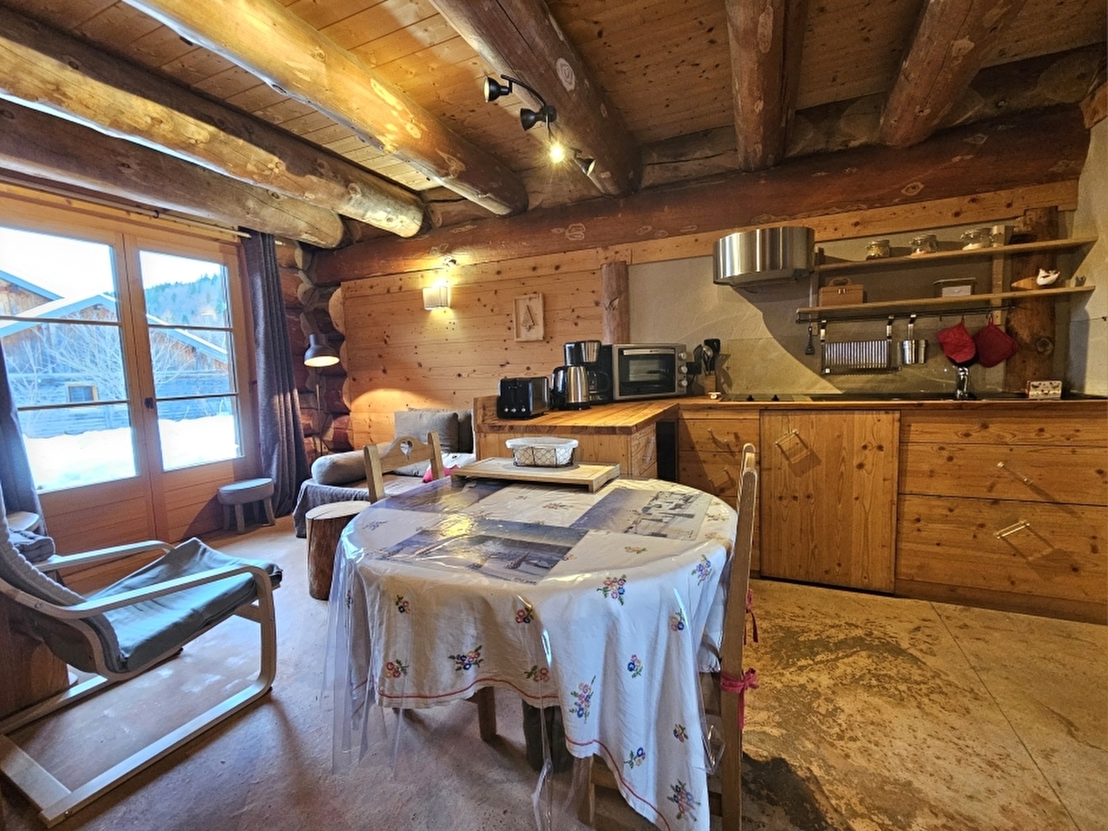 Located in a large chalet, this 39m² flat comprises an open-plan kitchen with sofa bed, a sleeping area opening onto the living room with 140cm bed and a shower room with WC.