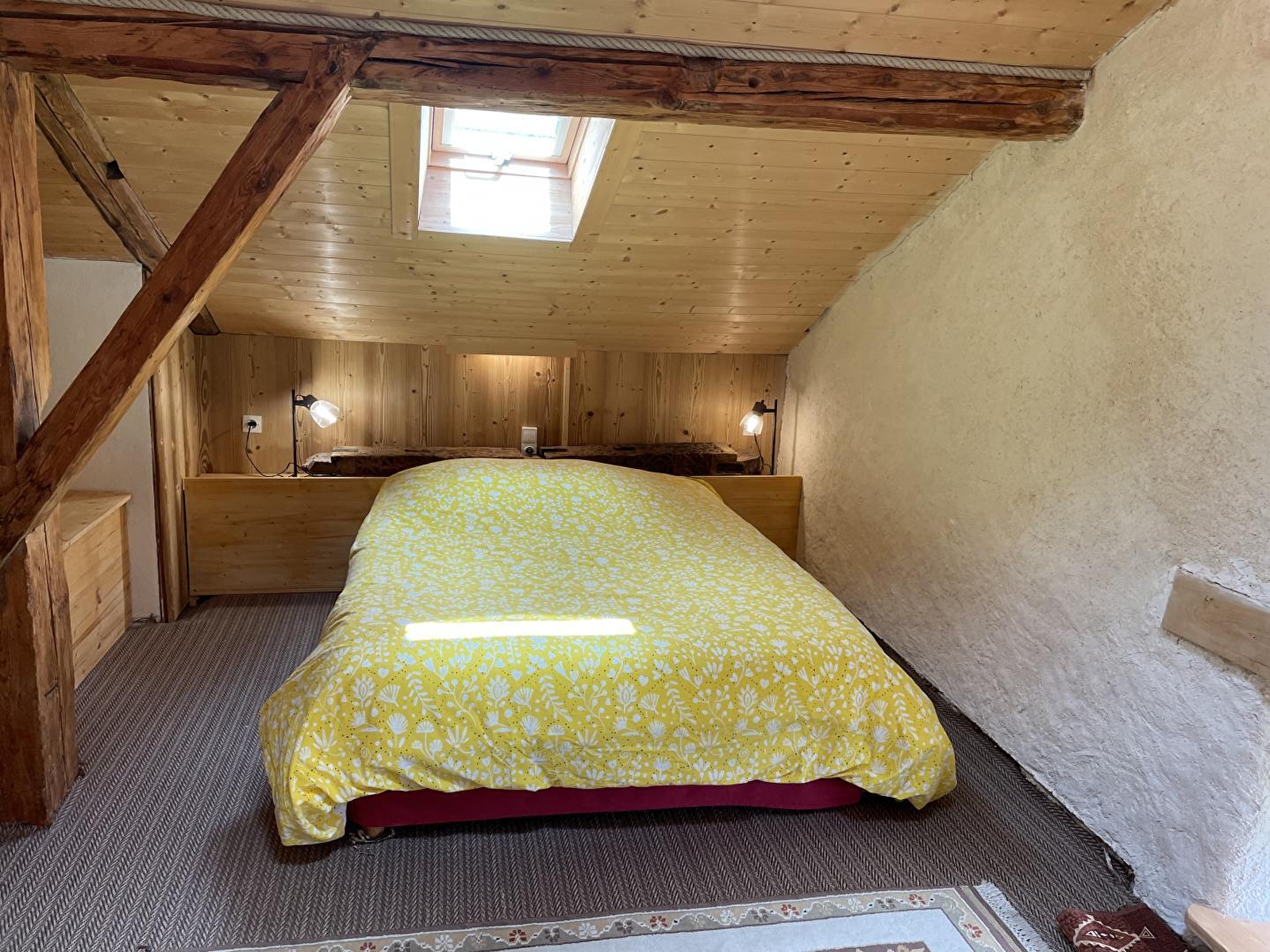 This large, bright and warm gîte built by the owner in local wood, lime-hemp, is waiting for you: a large living room-kitchen, 3 bedrooms, 2 bathrooms, 2 toilets, 1 sauna, 1 terrace, the forest and the view of the Jura Mountains, a good documentation on the region, WIFI, TV. It can accommodate 8 to 9 people. Possibility to recharge your electric vehicle.