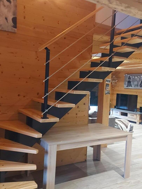 Situated in the Haut Jura, just a stone's throw from Lake Coiselet, this brand-new chalet will win you over with its cosy, uncluttered decor. It's the ideal place to spend some quality time with friends or family. On the ground floor, there is a large living room with a fitted kitchen and a sitting room with a pellet stove, sofas and a flat-screen TV. A master bedroom with 1 x 160cm bed and en-suite shower room with walk-in shower, utility room with washing machine and separate WC. Upstairs, a bedroom with 2 x 160cm beds and another bedroom with 2 single beds and 1 x 160cm bed, shower room with walk-in shower and WC. Outside, there is a lovely terrace with garden furniture and barbecue. Note: air conditioning only in the living room