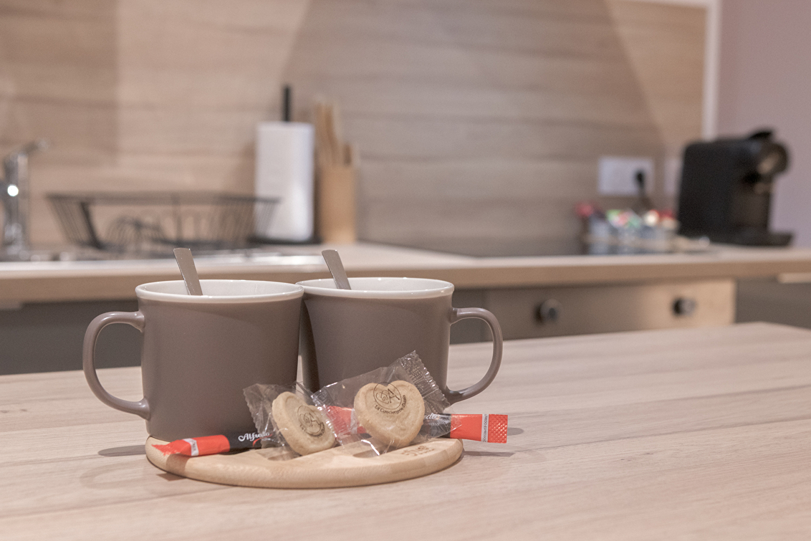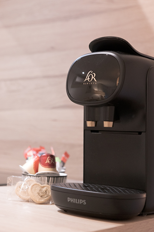 -Welcome kit including: bathroom kit, some coffee capsules, tea bags, sugar and a roll of toilet paper