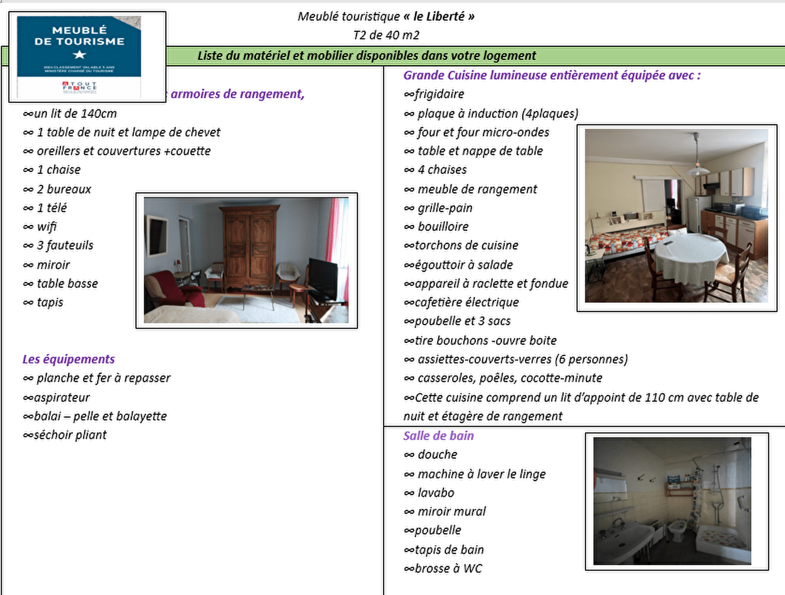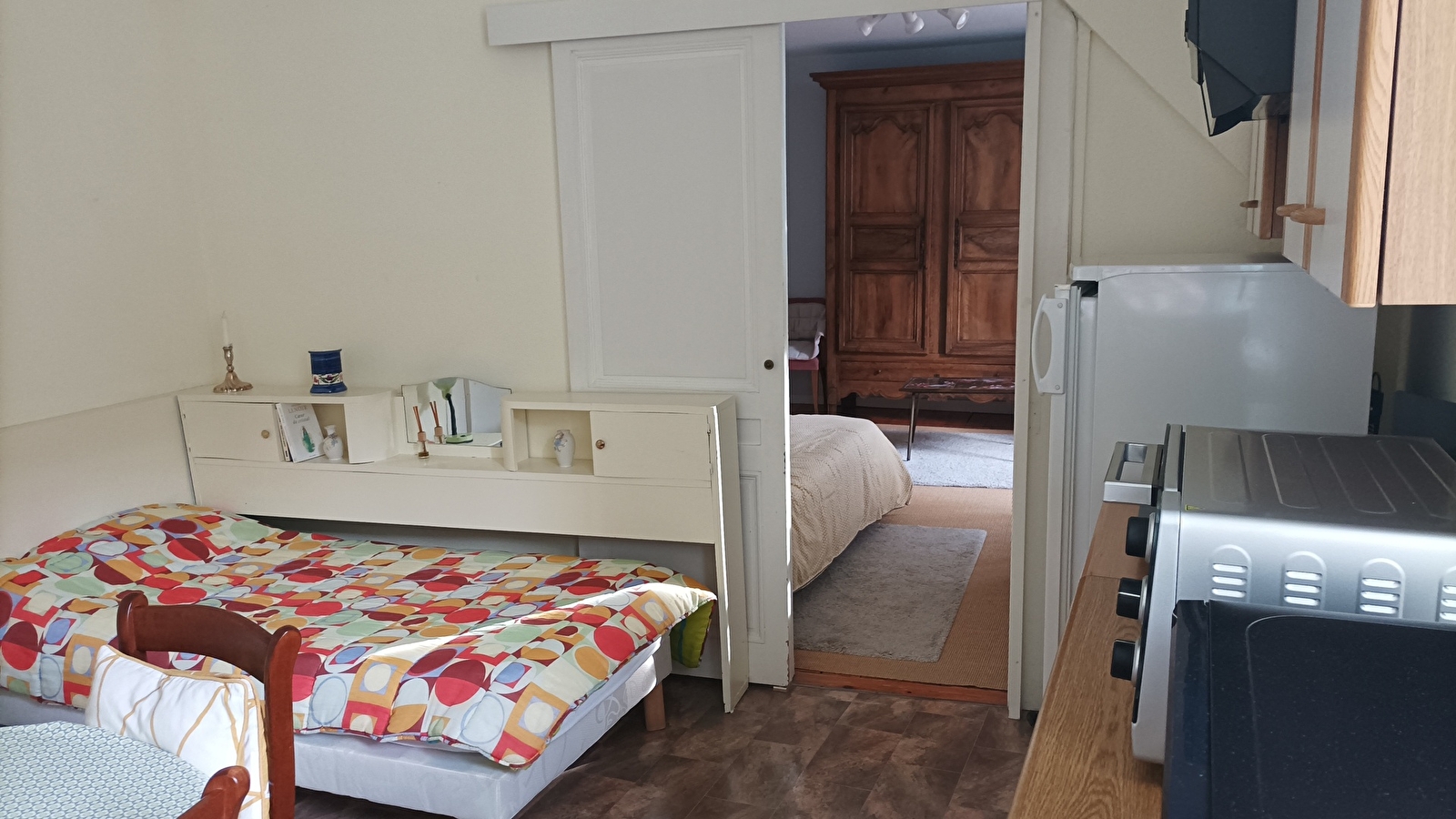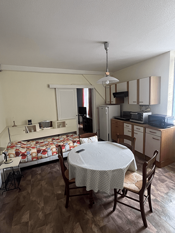 This 40 m2 furnished apartment, comprising a bedroom-living room with a 140 cm bed and a kitchen with a 90 cm bed, is ideal for 3 people. The kitchen is functional and very complete.