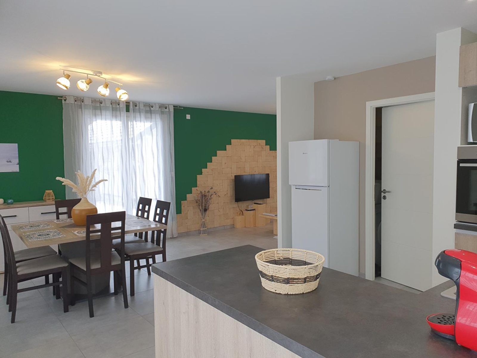 This new timber-frame house, situated in a quiet cul-de-sac, comprises on the ground floor a living room with fully-equipped fitted kitchen, a lounge with TV, a shower room with walk-in shower, a utility room and a separate toilet. Upstairs, there are 3 bedrooms, 2 with double beds (140cm), one with 2 single beds and a dressing area. Outside, there is a terrace with garden furniture, barbecue and deckchairs. For your convenience, beds will be made up on arrival. A room is available for storing equipment (skis, bikes, etc.) Note: low-temperature underfloor heating. A sauna is available, please contact the owners directly.