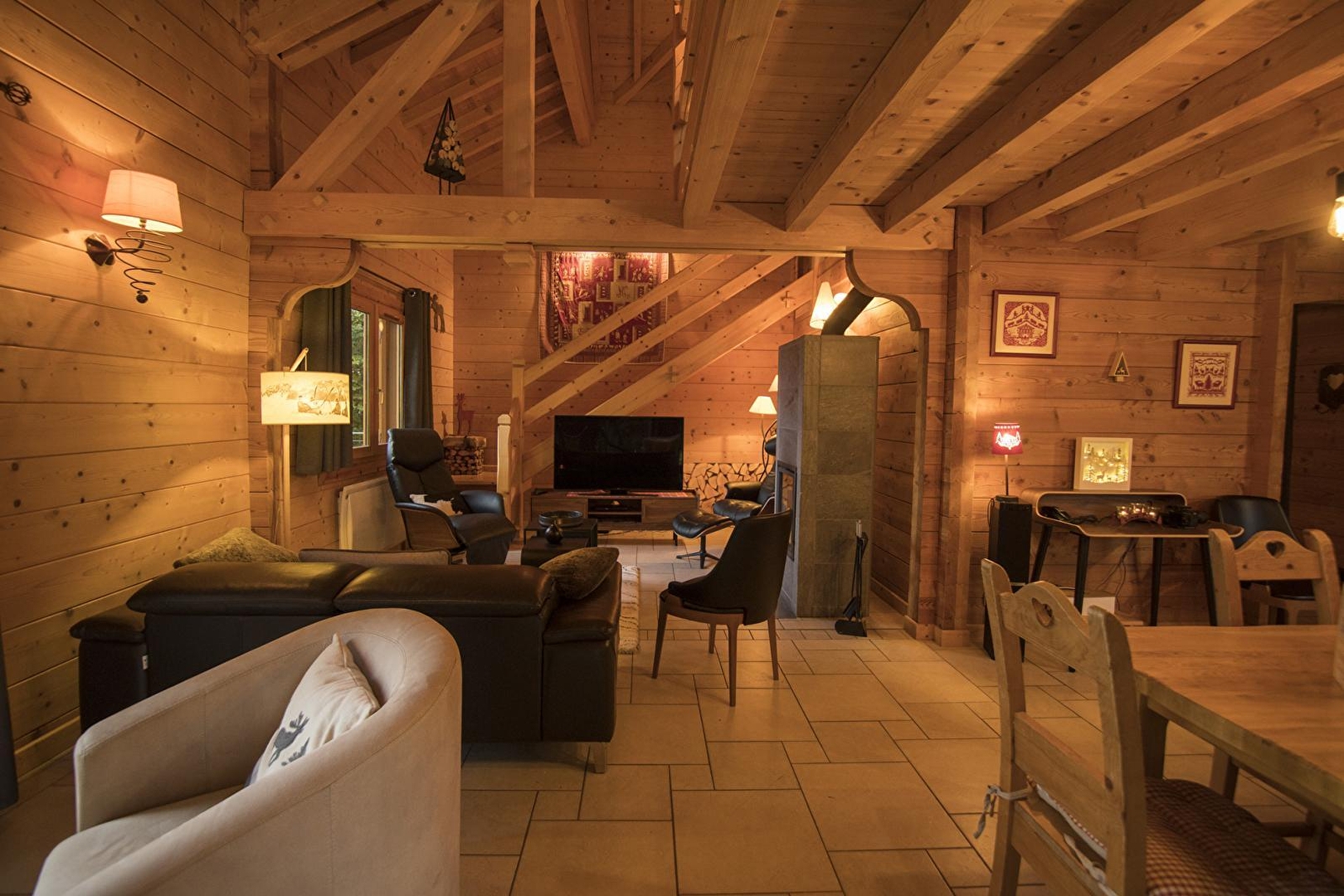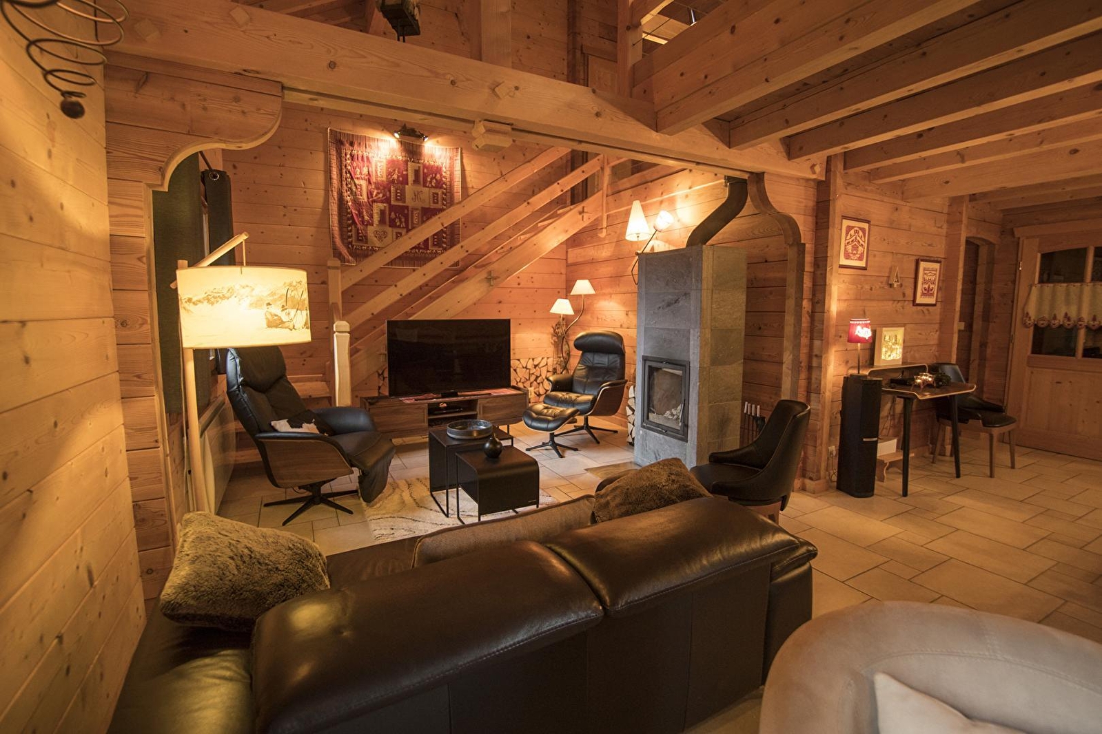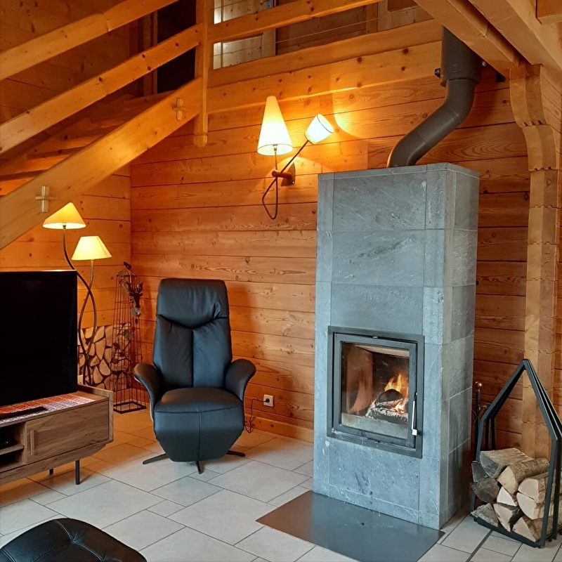 On the heights of the village, in a natural and authentic setting, a cosy and comfortable mountain chalet with uninterrupted views over the valley, set in a vast, green and unspoilt plot of land. Ground floor: large living room with new-generation 4K TV with curved screen, fully-equipped open-plan kitchen, linen room, wc, shower room with jet shower, bedroom 1: double bed (160cm). Upstairs: mezzanine with 1 sofa. CH2: 2 single beds (90cm) or 1 double bed (180cm), Ch3: 2 single beds, baby room. Spacious bathroom, wc. Terrace with garden furniture, barbecue, electric heating extra, wood supplied. Sauna, massage chair and Nordic spa available at an additional cost (140 euros). A must-see! (Due to the pandemic, the Nordic bath is not operating until further notice).