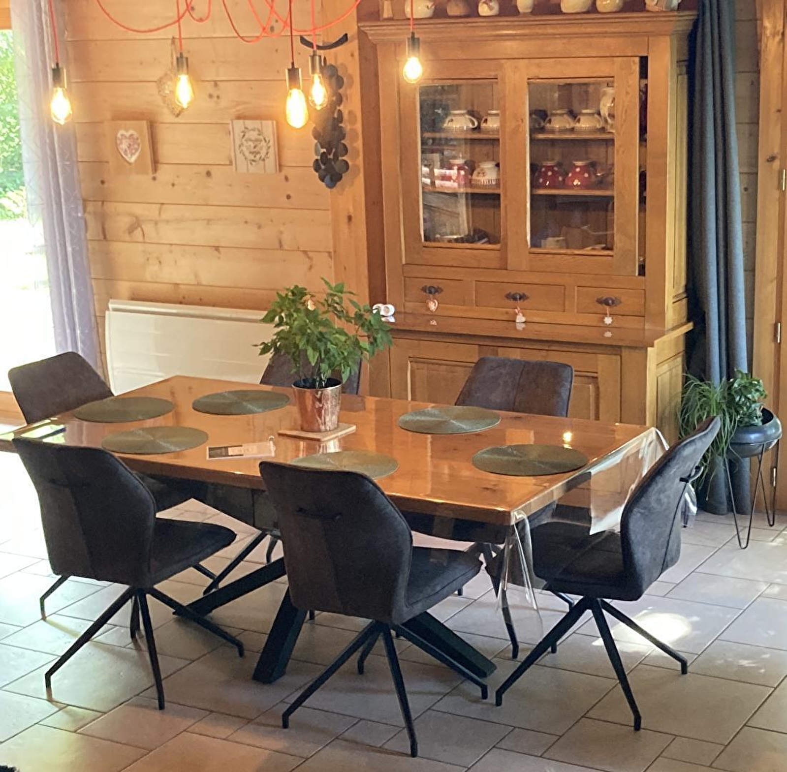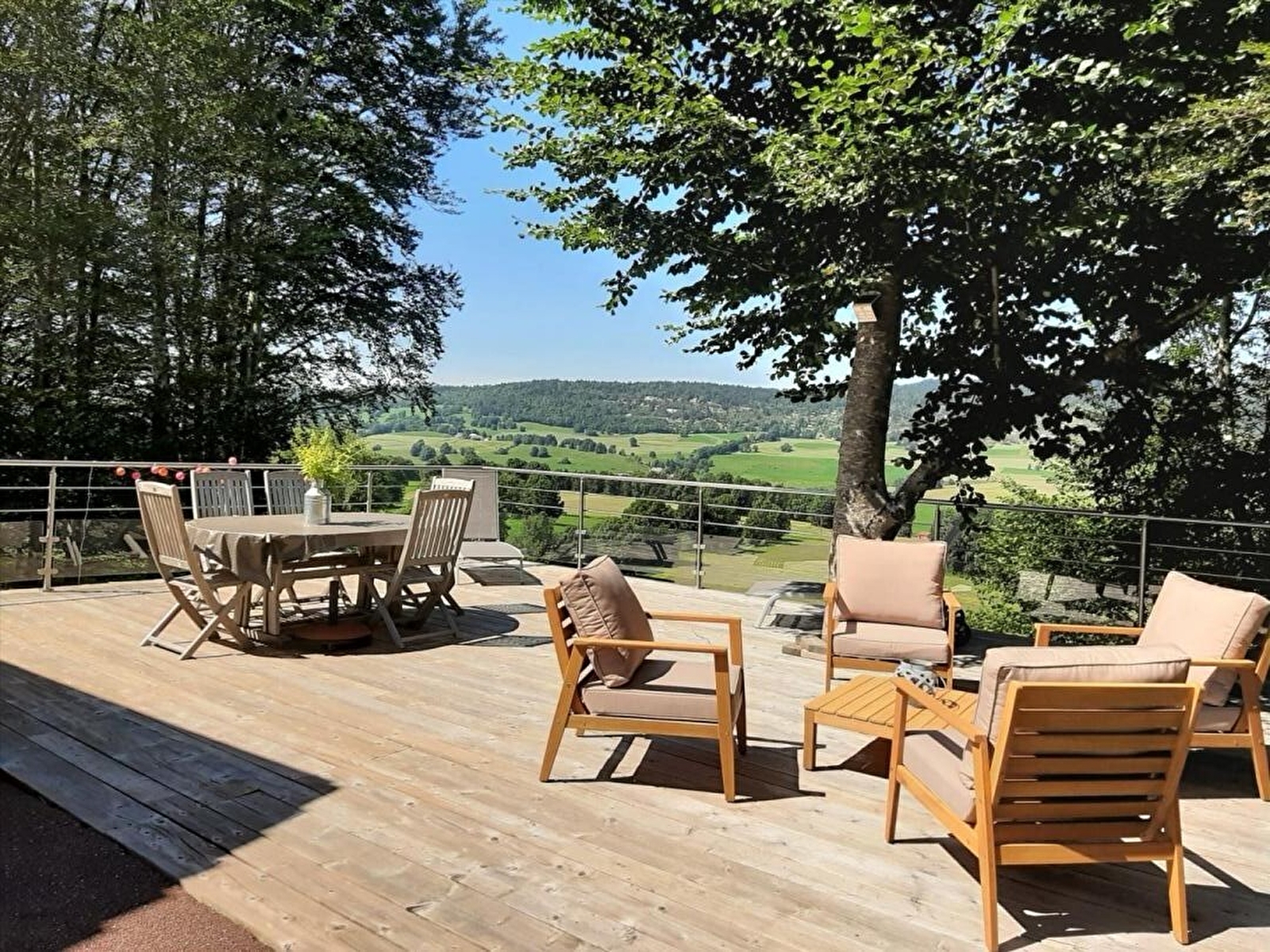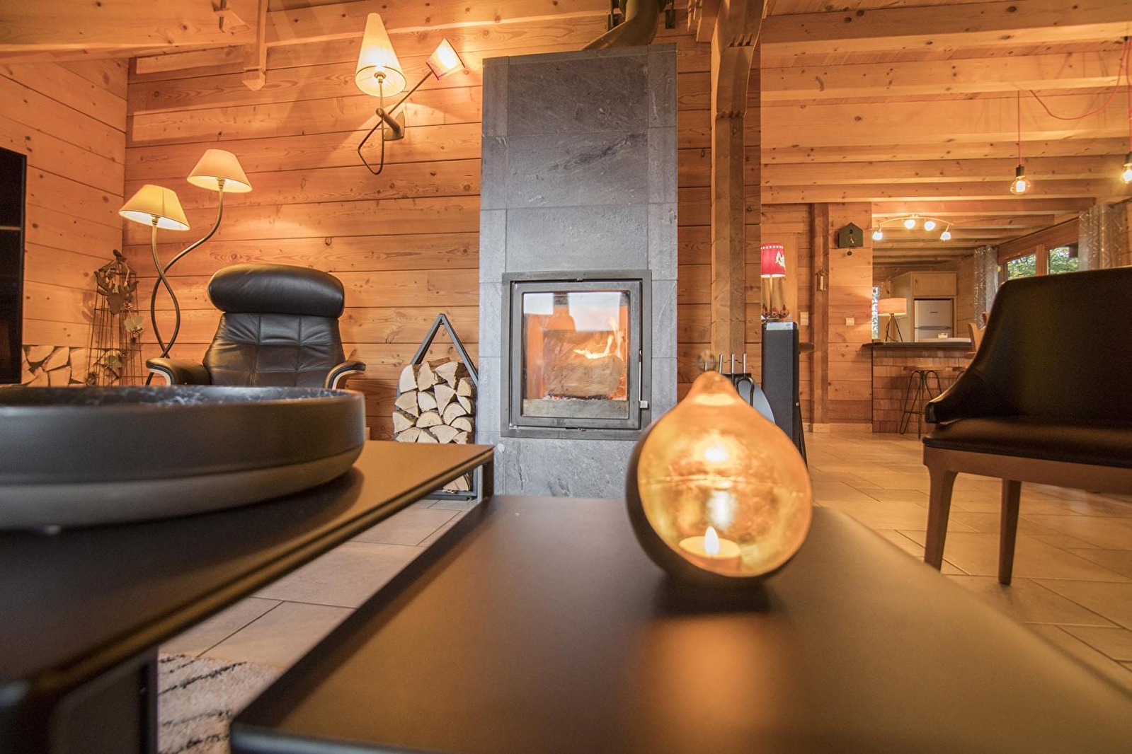 On the heights of the village, in a natural and authentic setting, a cosy and comfortable mountain chalet with uninterrupted views over the valley, set in a vast, green and unspoilt plot of land. Ground floor: large living room with new-generation 4K TV with curved screen, fully-equipped open-plan kitchen, linen room, wc, shower room with jet shower, bedroom 1: double bed (160cm). Upstairs: mezzanine with 1 sofa. CH2: 2 single beds (90cm) or 1 double bed (180cm), Ch3: 2 single beds, baby room. Spacious bathroom, wc. Terrace with garden furniture, barbecue, electric heating extra, wood supplied. Sauna, massage chair and Nordic spa available at an additional cost (140 euros). A must-see! (Due to the pandemic, the Nordic bath is not operating until further notice).