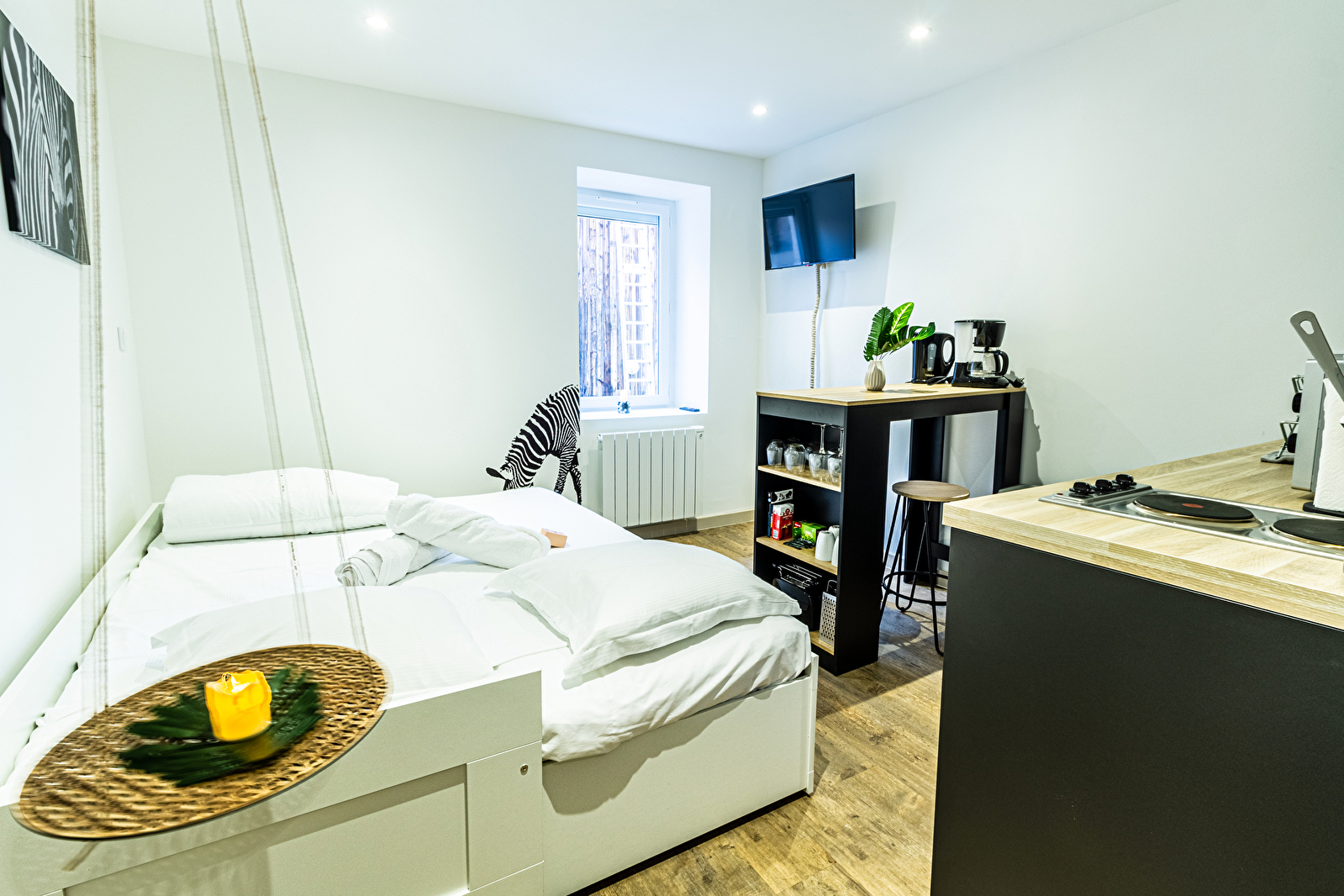 Whether you're on a business trip, on a romantic getaway or simply looking for a relaxing place with a distinctive style, the Lodge Zèbre promises you an unforgettable stay, combining comfort and originality.