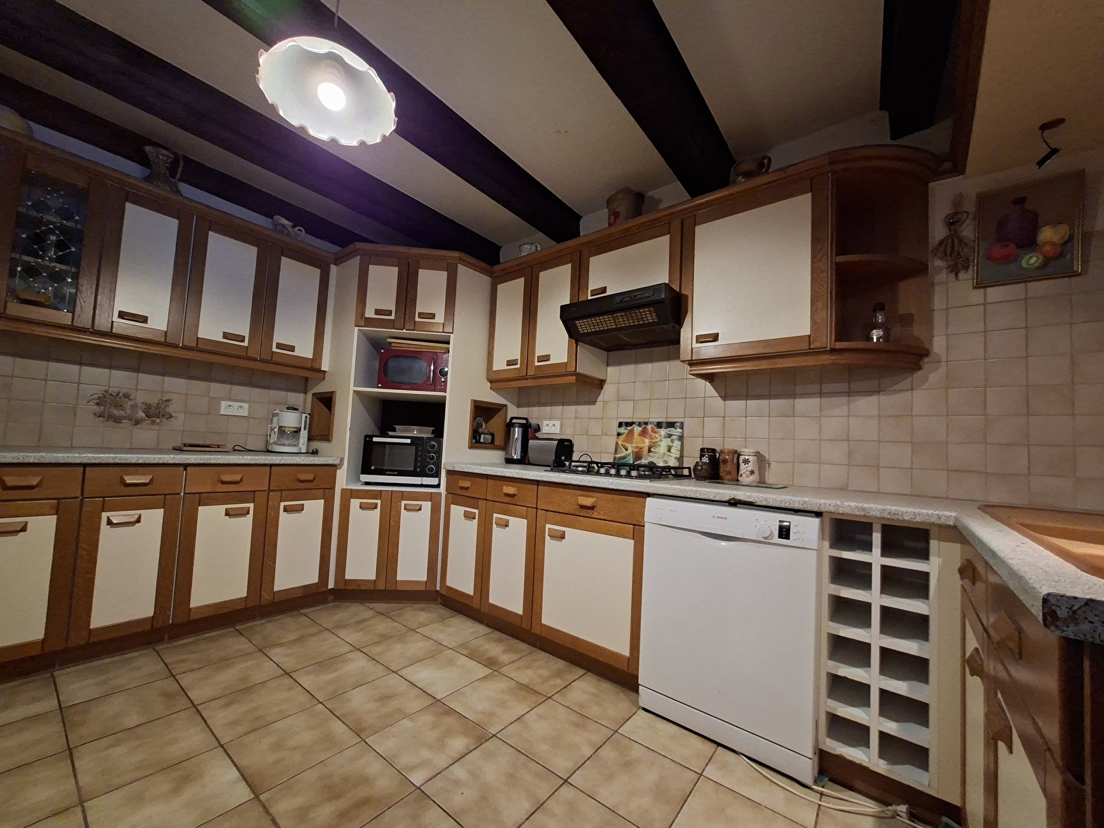 Detached house, 170m2, comprising a large entrance hall, a living room with sofa dining area, closed fitted kitchen, large closed sitting area with TV and 120cm sofa bed.