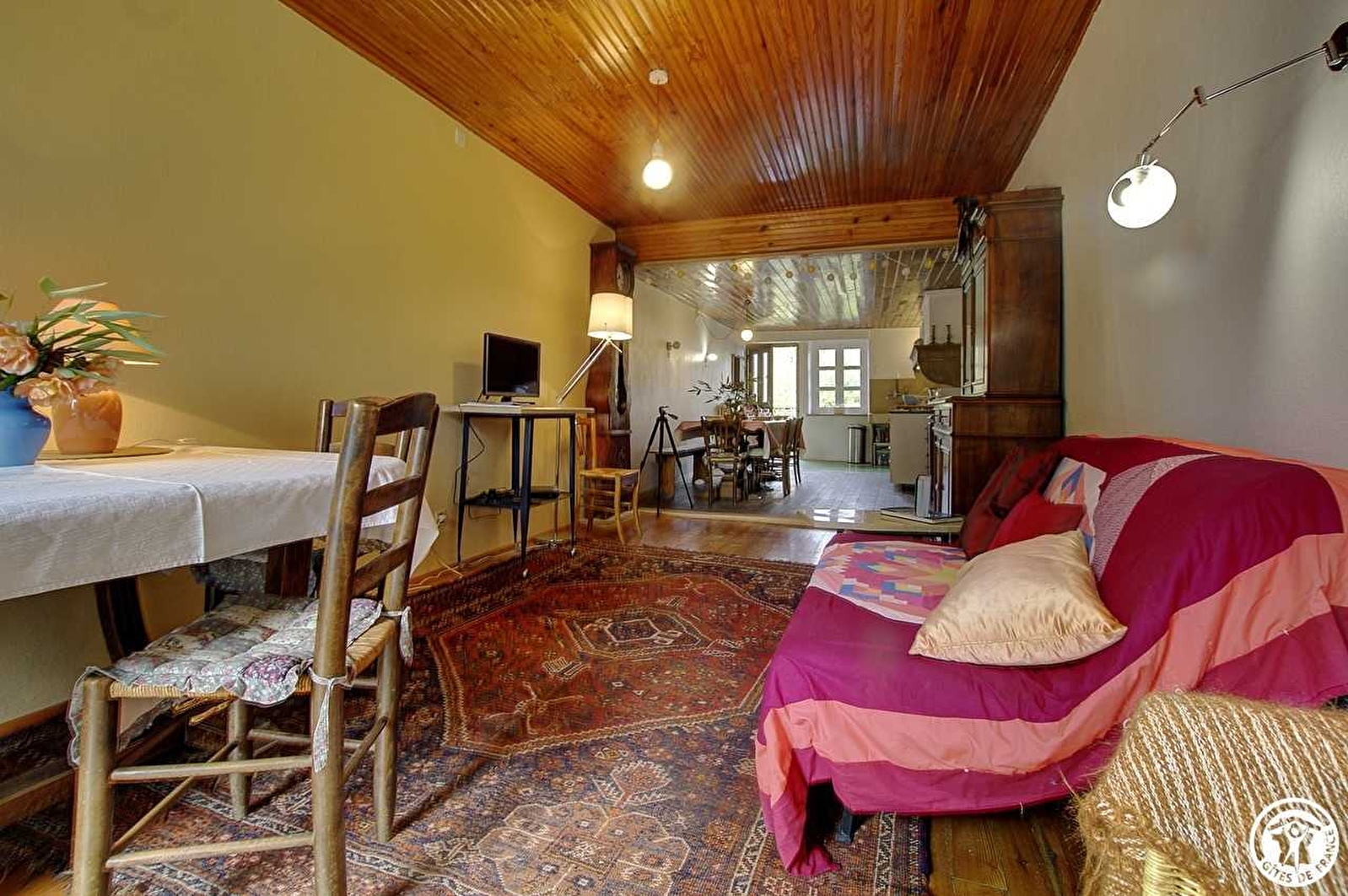 In the heart of the hamlet of Soiriat, Gîte Maison Joly is a typical stone house of Revermont, with its staircase and barn vault. It can accommodate up to 5 people. From the courtyard (with parking) and by the stone staircase, you will access a large through living room composed of a functional kitchen, the dining room and a relaxation area facing east. From this living room and by a small staircase, you will enjoy the garden and a terrace equipped with furniture. In the extension of the living room, a corridor leads to the bathroom with WC and storage space, and, one step lower, the bedroom has 2 single beds that can be joined together on request (80x200). By a wooden staircase, you are offered a second bedroom equipped with a double bed (140x200) and a single bed (90x190). The two bedrooms are to the east, on the garden side. On the ground floor, a barn accommodates bicycles and a workshop. The old adjoining stable has been transformed to offer you an independent toilet and a bathroom with a laundry room and the boiler, then leads to the garden. The advantage of this Gîte: the beds are made on your arrival, the towels are provided and the charges are included. From the house, adjoining, in this small village, hiking trails and bike routes start. Chambod Island with its supervised swimming is located just 4 km away.