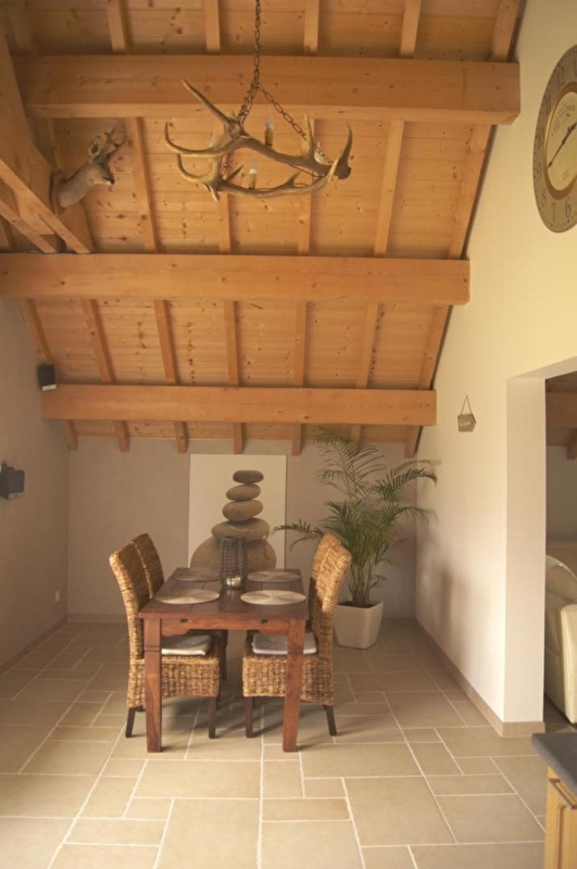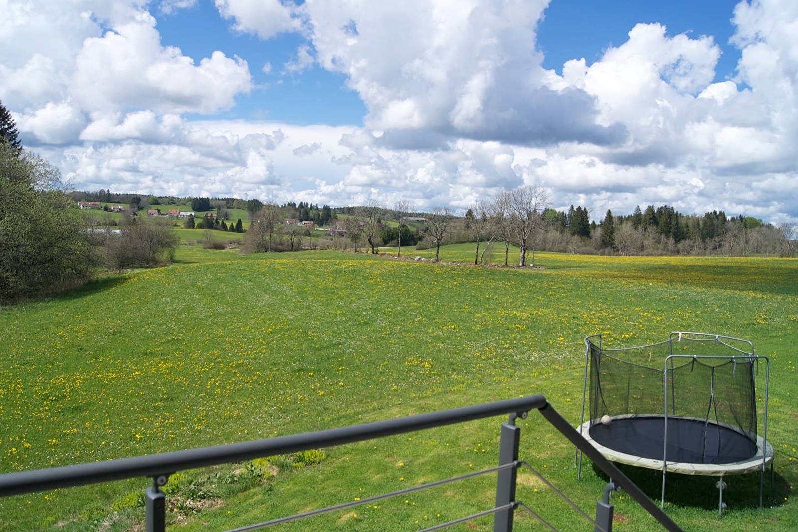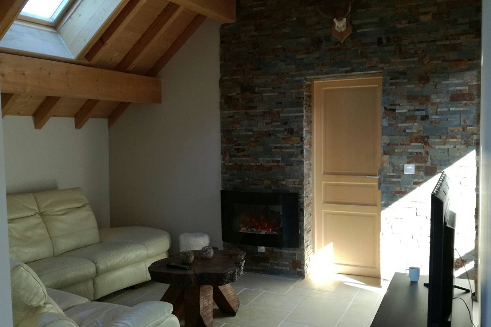 This gîte is located on the first floor of the owners' house and consists of a living room with a fully equipped kitchen, a dining room, a lounge with a flat screen TV and XBOX console with games, 2 bedrooms with 2 double beds, each with access to a shower room with WC. outside: garden furniture, barbecue, deckchair and trampoline. You can get to the town centre in 10 minutes on foot where you will find all the shops: restaurants, pharmacy, hairdresser, bakery, butcher's, casino, cheese shop... Saint-Laurent is also the ideal starting point for hiking, cross-country skiing and snowshoeing