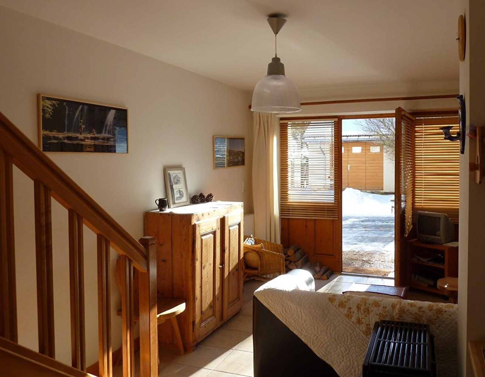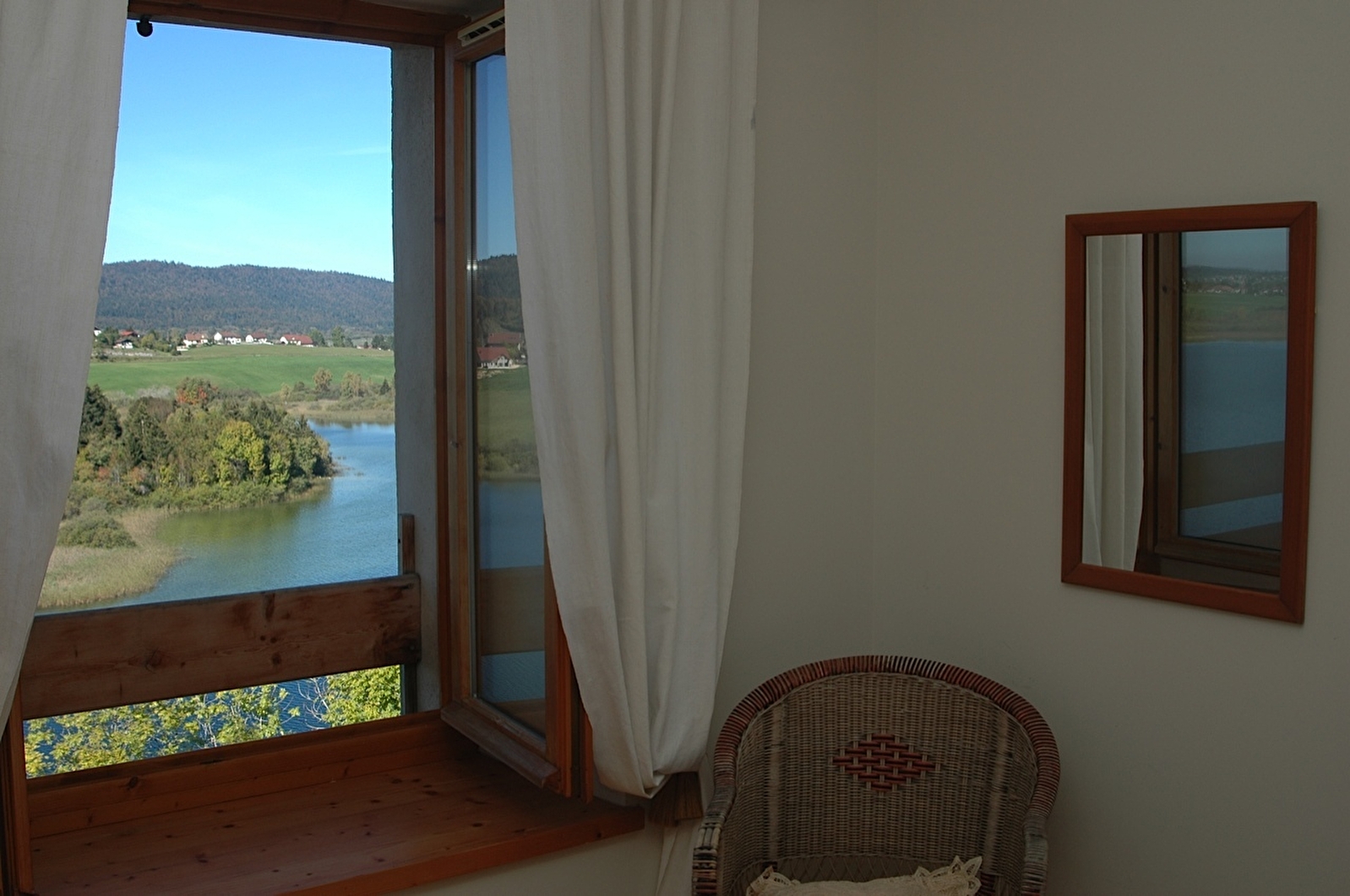Accommodation in a semi-detached house close to the Abbaye lake. Ground floor: fitted kitchen, living room with TV and DVD player. First floor: bedroom 1: 160x200cm bed, bedroom 2: 2 single beds, shower room, relaxation and reading area. Land available close to the house. Uninterrupted view of Lac de l'Abbaye from bedroom 1 window, garden furniture, barbecue. Oil-fired central heating. All utilities included. Full baby facilities available on request.