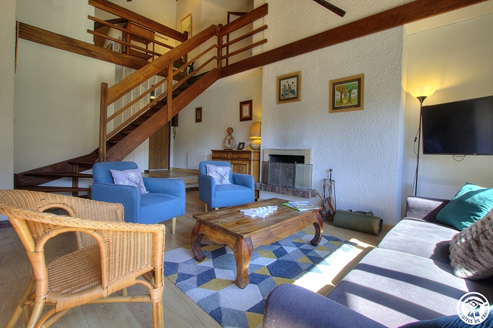 Let's discover your future rental: the first level is composed of a large living room with lounge area, equipped kitchen. Cathedral ceiling. A balcony (6 m²) with a view of the village and the mountain. Independent WC with washbasin. To access the second level, take the stairs. A relaxation area dedicated to reading. First bedroom with a 160*200 bed, the second bedroom or sleeping area has two 90*190 beds. This room does not have a door but a curtain for more privacy. Bathroom with independent WC integrated into the room.