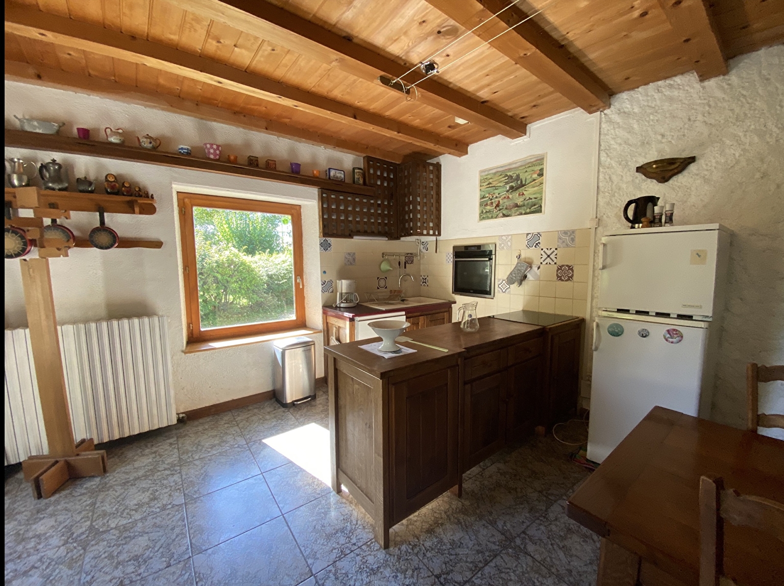 Tastefully furnished, this single-storey gite (65 m2), located 15 minutes from Ornans and 35 minutes from Besançon, features a large living room with a fully-equipped kitchen area, a sitting/dining room separated by a step, and a sofa bed. An adjoining corridor leads to the bedroom (140cm bed), bathroom and wc.