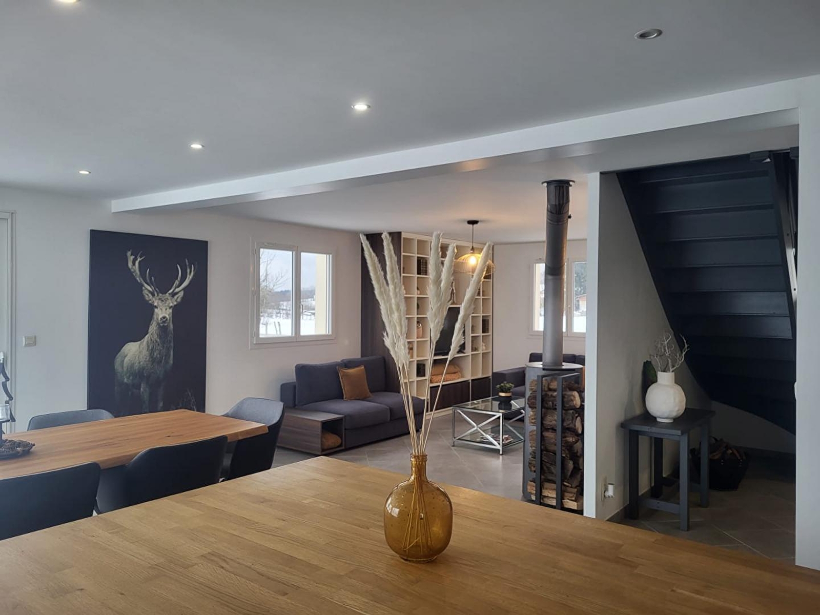 Looking for cosy accommodation where you can get together with family or friends? Then look no further, this is the house for you! Christelle and Pierre have completely renovated it using quality materials and equipment to provide you with optimum comfort. The ground floor comprises a large, light-filled living room with panoramic views over the surrounding fields and the Nozeroy plateau, a fully-equipped kitchen, a large dining room and a sitting area with home cinema and wood-burning stove. On the same level, bedroom with double bed (160x200), bathroom with spa bath and shower, separate WC, study area and laundry room (washing machine and tumble dryer). Upstairs, a large mezzanine with lounge and home cinema, 2 bedrooms with 2 single beds that can be twinned, a bedroom with 1 double bed (160x200) and a shower room with WC. For your convenience, beds will be made up on arrival and towels provided. Outside, there's a terrace with garden furniture, barbecue and sun loungers. Ideally located for hiking, skiing and cycling enthusiasts. You can also explore the many lakes and waterfalls (Lac de Chalain, Cascades du Hérisson, Gorges de la Langouette, etc.), the medieval town of Nozeroy and the famous villages of Baume les Messieurs and Chateau-Chalon. Not forgetting, of course, taking the time to sample our regional produce: Comté, Morbier, Mont d'Or, Morteau sausage...