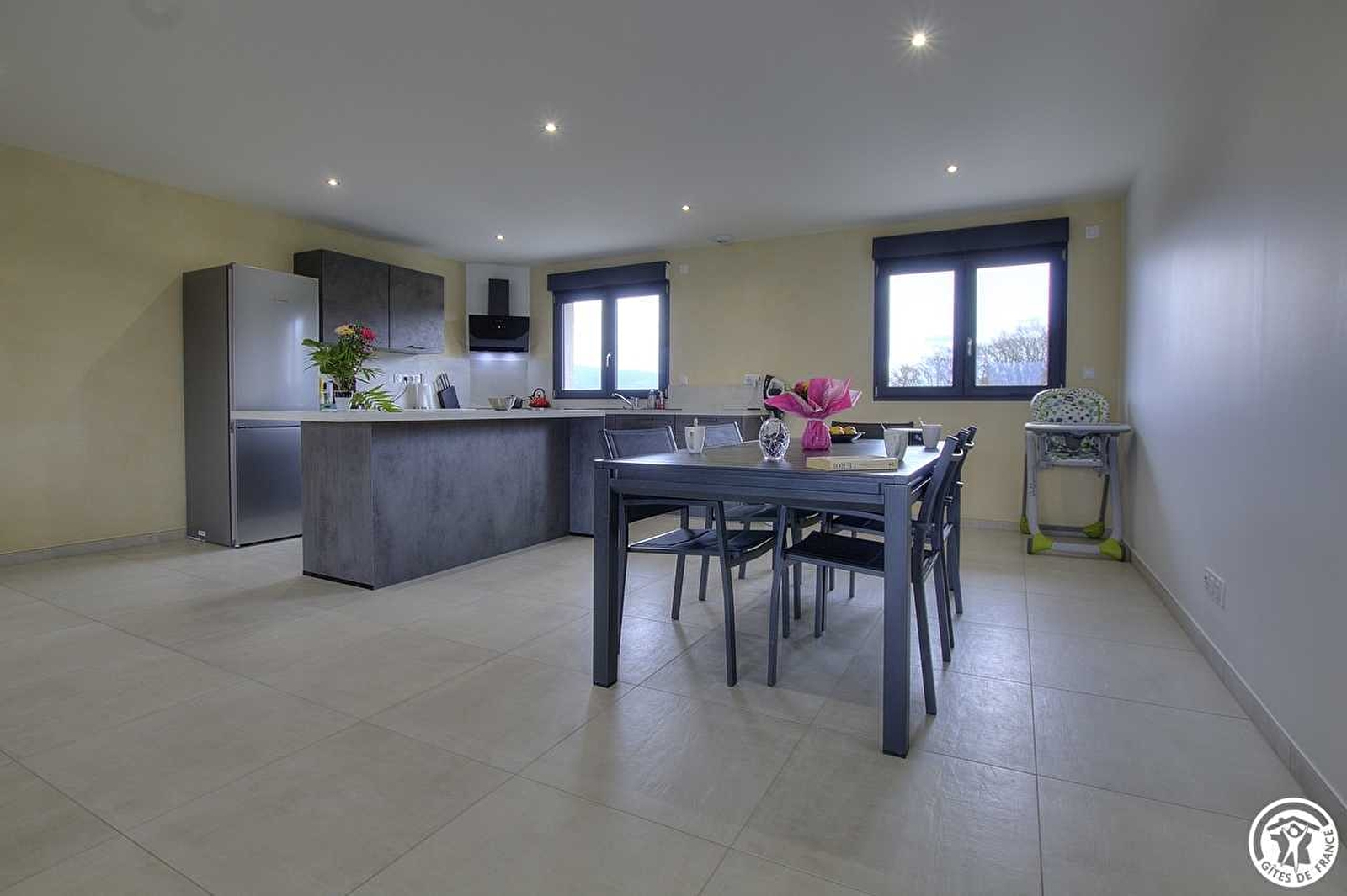 Inside, wood and steel are present with its beams and railing. All harmonize around a soft and refined decoration. Large volume and space to meet between young and old.