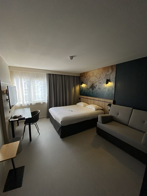 Very quiet hotel with easy access, free private parking, close to the SNCF train station. Bus service to the city centre just 500 m away. Restaurant Au fil des Saisons, large shaded terrace with swimming pool. Welcoming, modern and warm, with a comfortable bed and a functional bathroom, our rooms offer everything you need for a pleasant stay, with flat-screen TV and TNT bouquet. The rooms have air conditioning, hairdryers and courtesy tray.