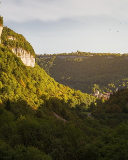 Reculées, such as the one at Baume-les-Messieurs, are deep valleys that end in a dead end, flanked by impressive limestone cliffs. These spectacular geological formations often shelter waterfalls and caves.