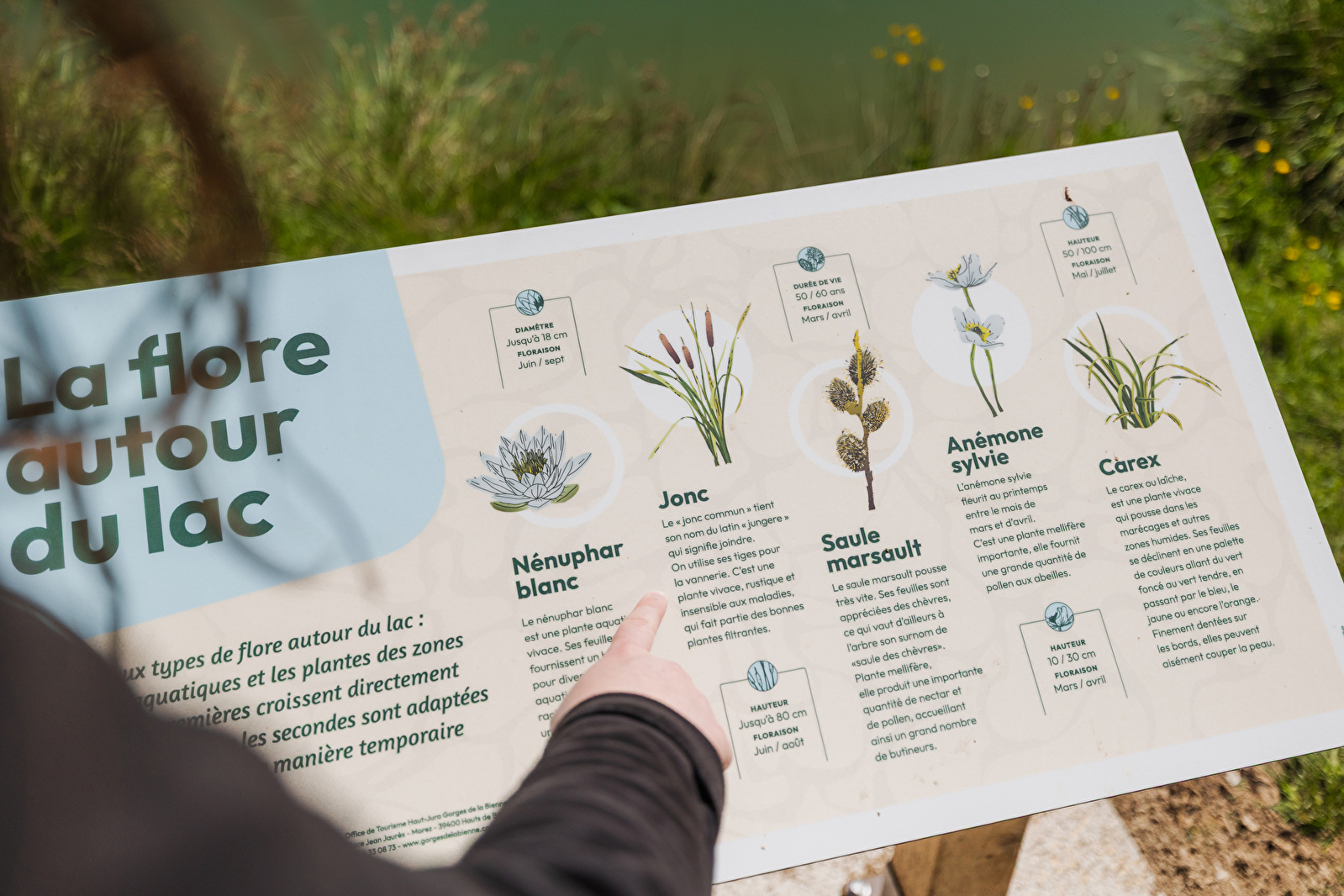 For a number of years, the Haut-Jura Arcade Community of Communes has been committed to developing the Bruyères lake. In May 2025, interpretation panels were installed along the path around the lake, providing information about the flora and fauna that inhabit the area.