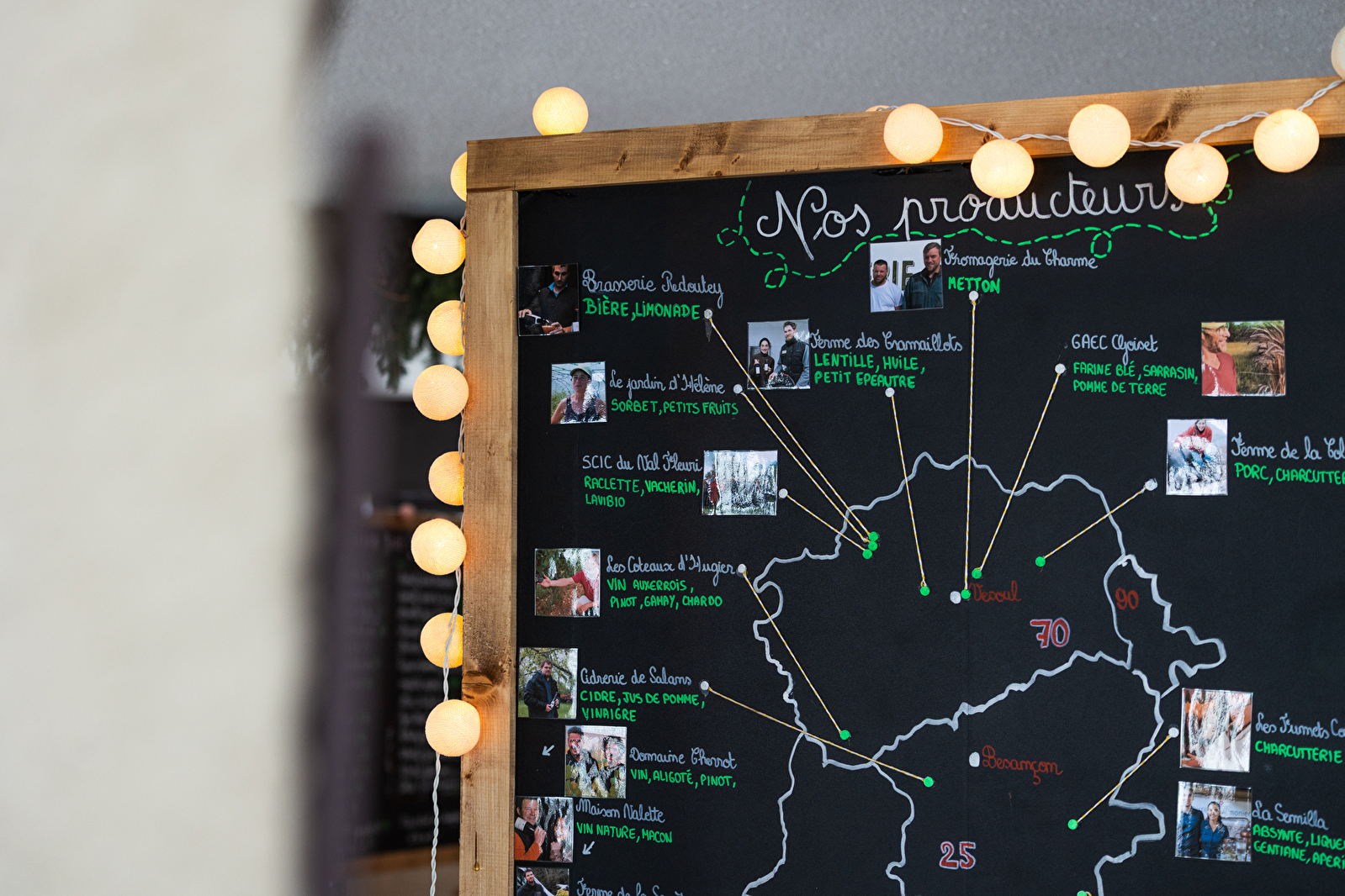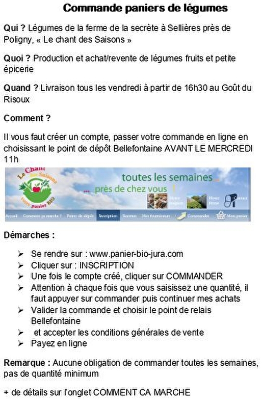 - Baskets of vegetables for collection on Friday afternoons, from the Secrète farm in Sellières.