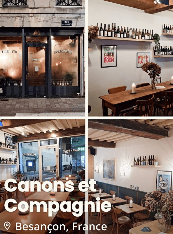 Canons et Compagnie is a friendly wine bar that combines natural wines, local beers and cuisine inspired by the flavours of the world. It's a cosy place that offers an authentic, relaxed experience. The concept is based on the pleasure of sharing a glass or a plate of food in a friendly atmosphere. Guests can enjoy carefully selected wines, served by the glass or bottle, accompanied by dishes to share, featuring fresh, quality produce. The restaurant is ideal for an after-work get-together with friends, a relaxed evening out or a solo taste experience. With its passionate team and warm welcome, Canons et Compagnie is a must for lovers of fine wines and quality cuisine in Besançon.