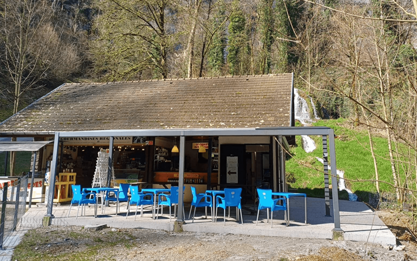 Fast-food restaurant and souvenir and decoration shop, at the end of the magnificent Baume-les-Messieurs retreat, between the Cascades and the Caves.