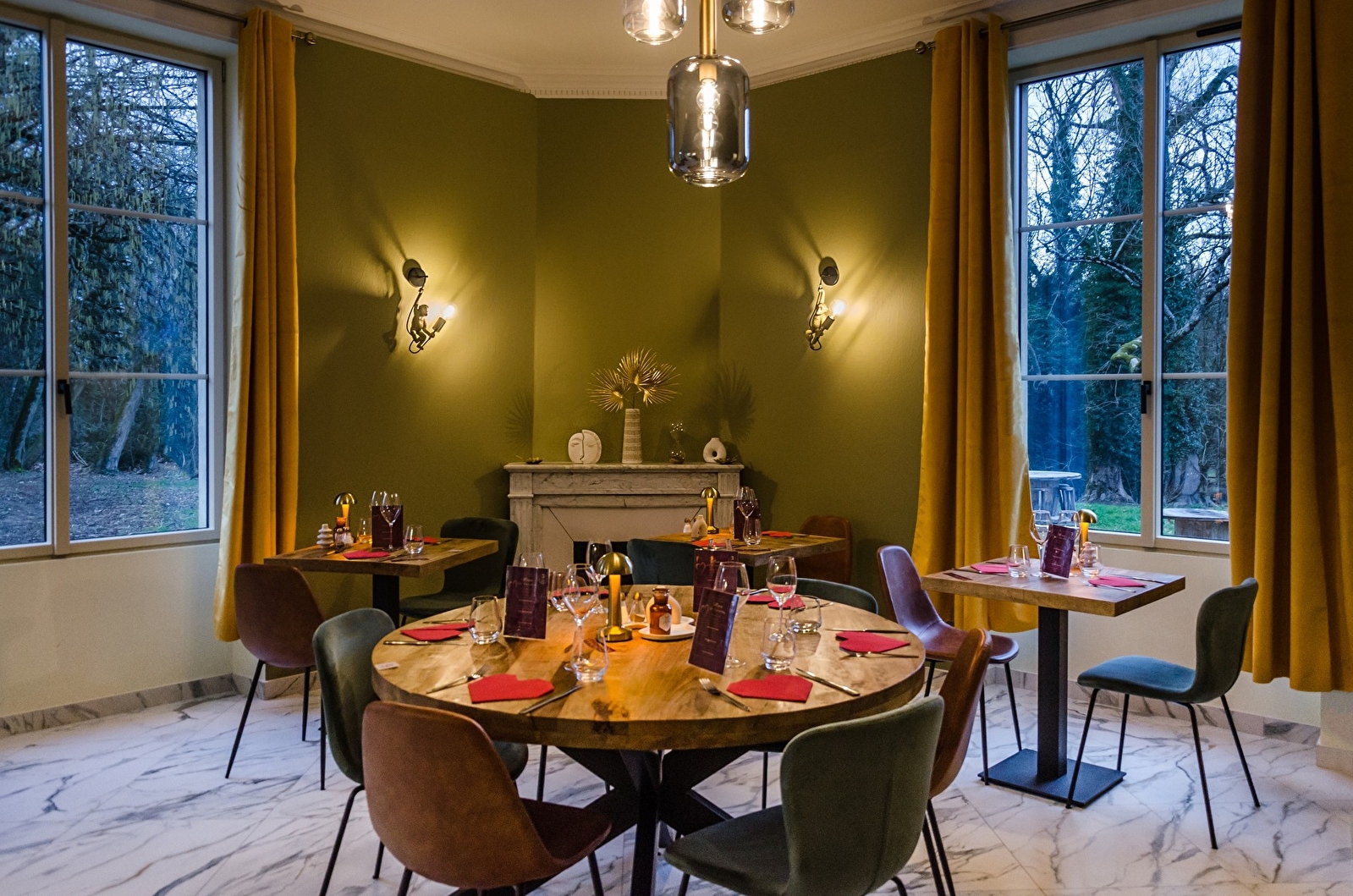We guarantee the quality of our produce (fresh, local and in season). There are also a number of options for people on special diets (vegetarian, gluten-free, lactose-free, vegan). In fine weather, a lovely terrace is available. Before or after your meal, take a stroll through our wooded park and discover our century-old trees, beehives and water bridges. Desserts made with honey from our own beehives. Theme evenings, evening shows and private hire available for christenings, weddings, works councils, cousin parties, etc.