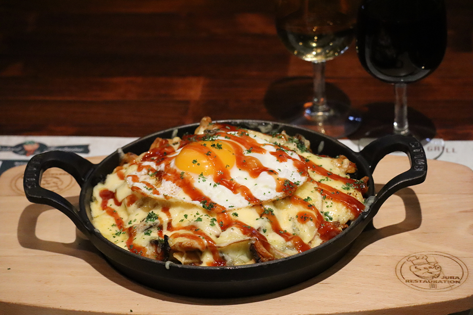 In the heart of the village of Clairvaux-les-Lacs, the Bistrot de la Fontaine welcomes you in a warm atmosphere inspired by traditional Irish pubs.