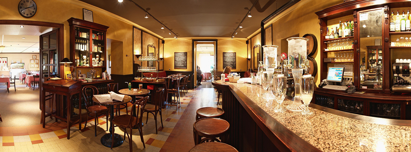 Inside, an old English apothecary's cabinet has been completely restored and now serves as a buffet. The bookshelves are filled with unusual objects and travel souvenirs. Not forgetting the unmissable wood and marble bar behind which bottles and flasks are neatly lined up.