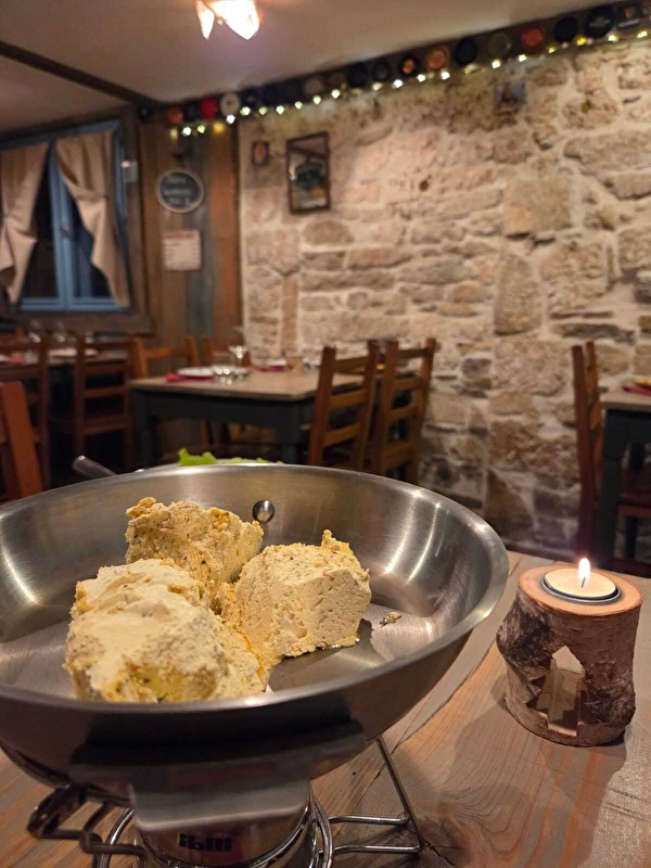 Tastefully converted restaurant in a character house in the heart of Saint-Hippolyte. The dining room is full of charm... and the generous cuisine is a delight! It's the ideal place to enjoy traditional dishes such as fondue, poëlée and rösti!