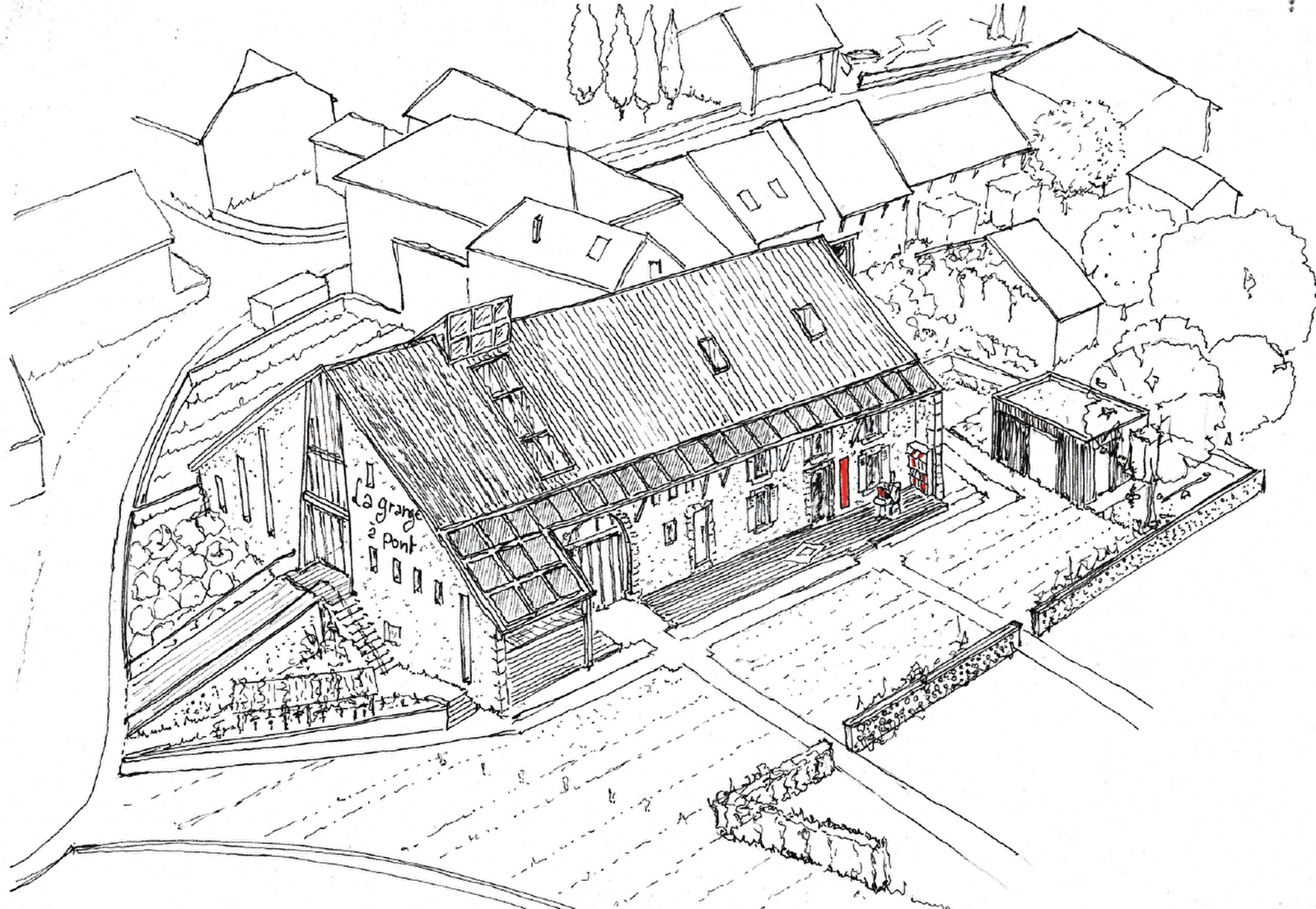 La Grange à Pont, a former farmhouse in Versonnex, brings together a bookshop-café, a chocolate factory, a coworking space, a bicycle workshop and a cycle store, with a weekly market and a view of Mont Blanc, revitalizing village life in a participatory spirit.