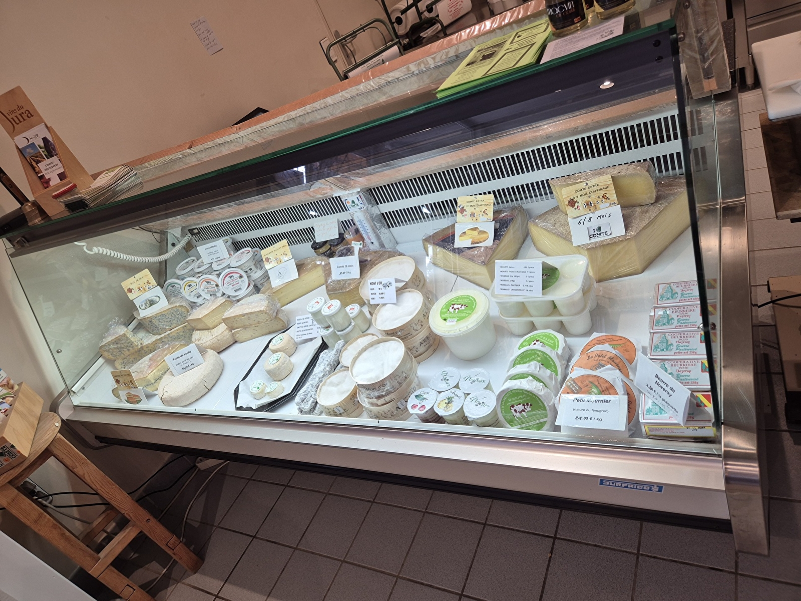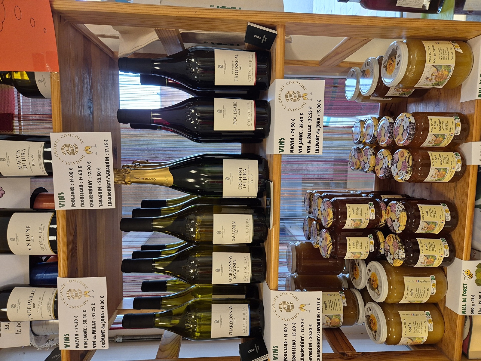 Many local products to discover on site: Comté PDO of various maturities, Morbier PDO raw milk, Bleu de Gex PDO, raclette raw milk, Mont d'Or PDO in winter, Nozeroy butter, wine, honey...
