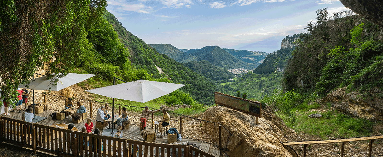 After passing through a majestic room, it's just a short walk to a surprising lookout point in the middle of a cliff facing the Cerdon retreat... not to be missed... just like the unique porch you pass through at the end of the tour to enter prehistory.