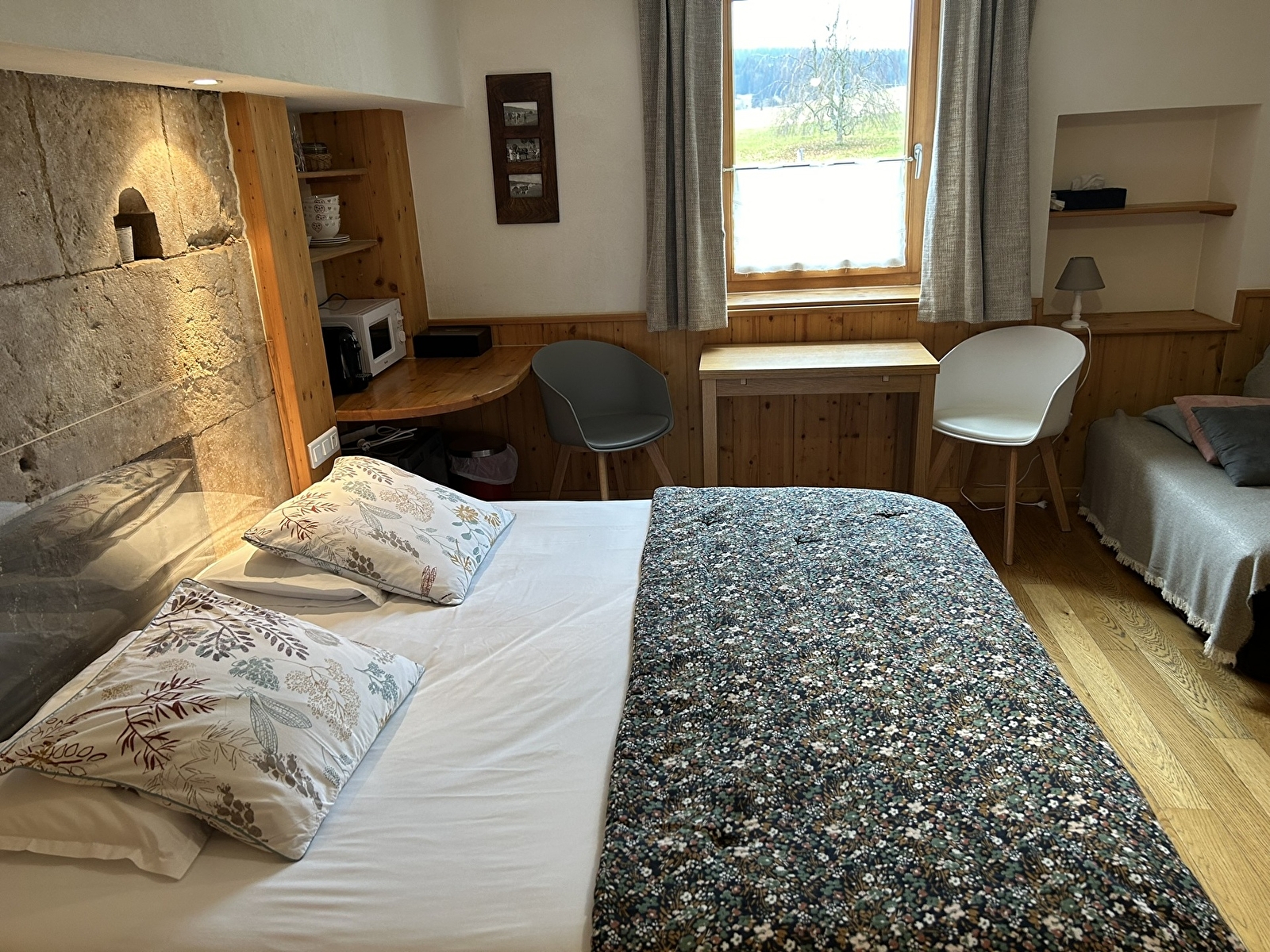 Located on the ground floor of an old Haut-Jura farmhouse, our rooms are spacious and comfortable. They have been tastefully renovated in a cosy, authentic style.