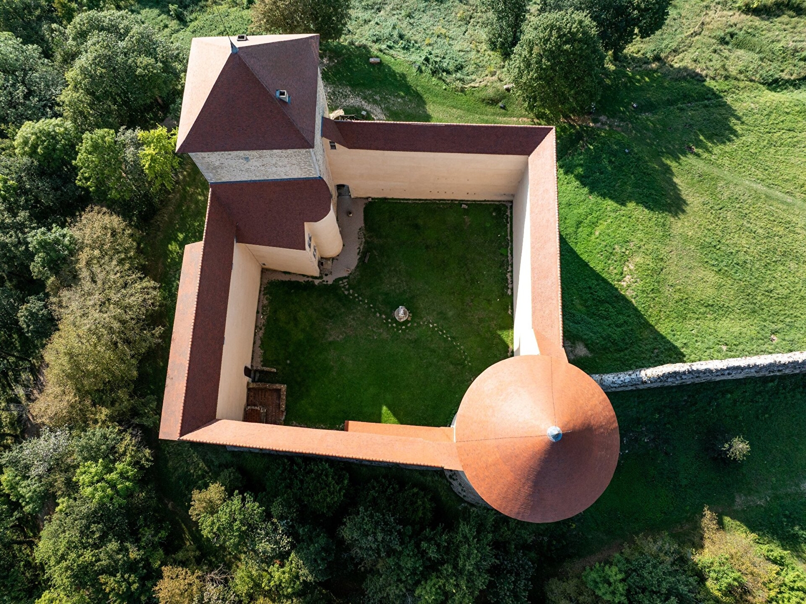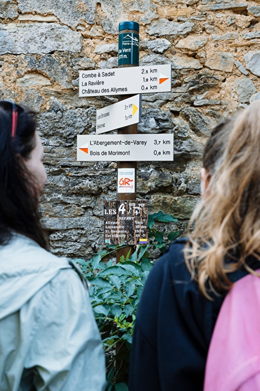 The Chateau des Allymes (Allymes Castle) has preserved intact many features of medieval military architecture that defended the territory during the Middle Ages. The Chateau des Allymes is made up of two sections. There is an upper courtyard which is formed by four curtain walls linking the keep (donjon) to the round or watch tower. Secondly there is the outer bailey with the remains of a large fortifying wall and a small watch tower.
