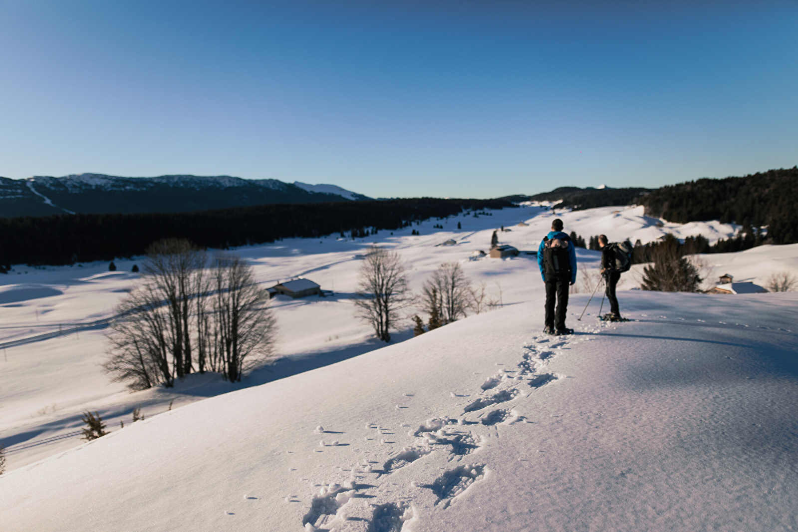 The high valleys of the Jura between Lajoux and La Pesse offer a Nordic landscape perfectly suited to snowshoeing.