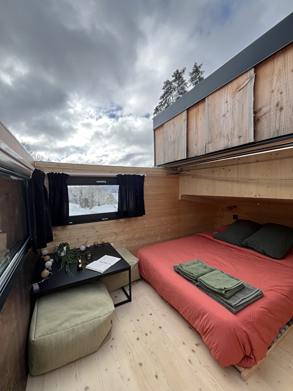 Unlike classic tiny houses, this cabin/ hut is entirely dedicated to sleep and dreams — with nothing but cozy beds for a suspended moment under the stars.