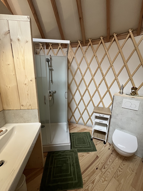 Just steps away, the “Petite Yourte du bois des 5” offers your own private bathroom and fully equipped kitchen, blending rustic comfort with a touch of adventure.