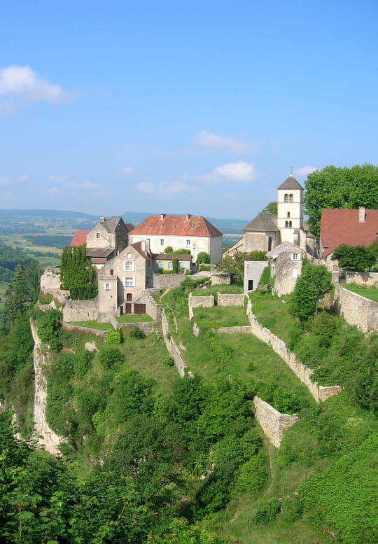 >> Feast your eyes as well as your tastebuds at Château-Chalon (20 min.), officially one of the "most beautiful villages in France" and a key site in the production of the famous wines of Jura.