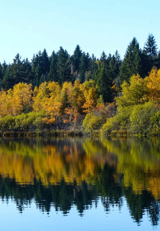 Each season comes with its own dominant colours mirrored in the waters of Bonlieu Lake. Winter brings the immaculate white of the snow, summer of course offers multiple shades of green, while autumn is a burst of yellow and orange. Every time, it's a wondrous sight!