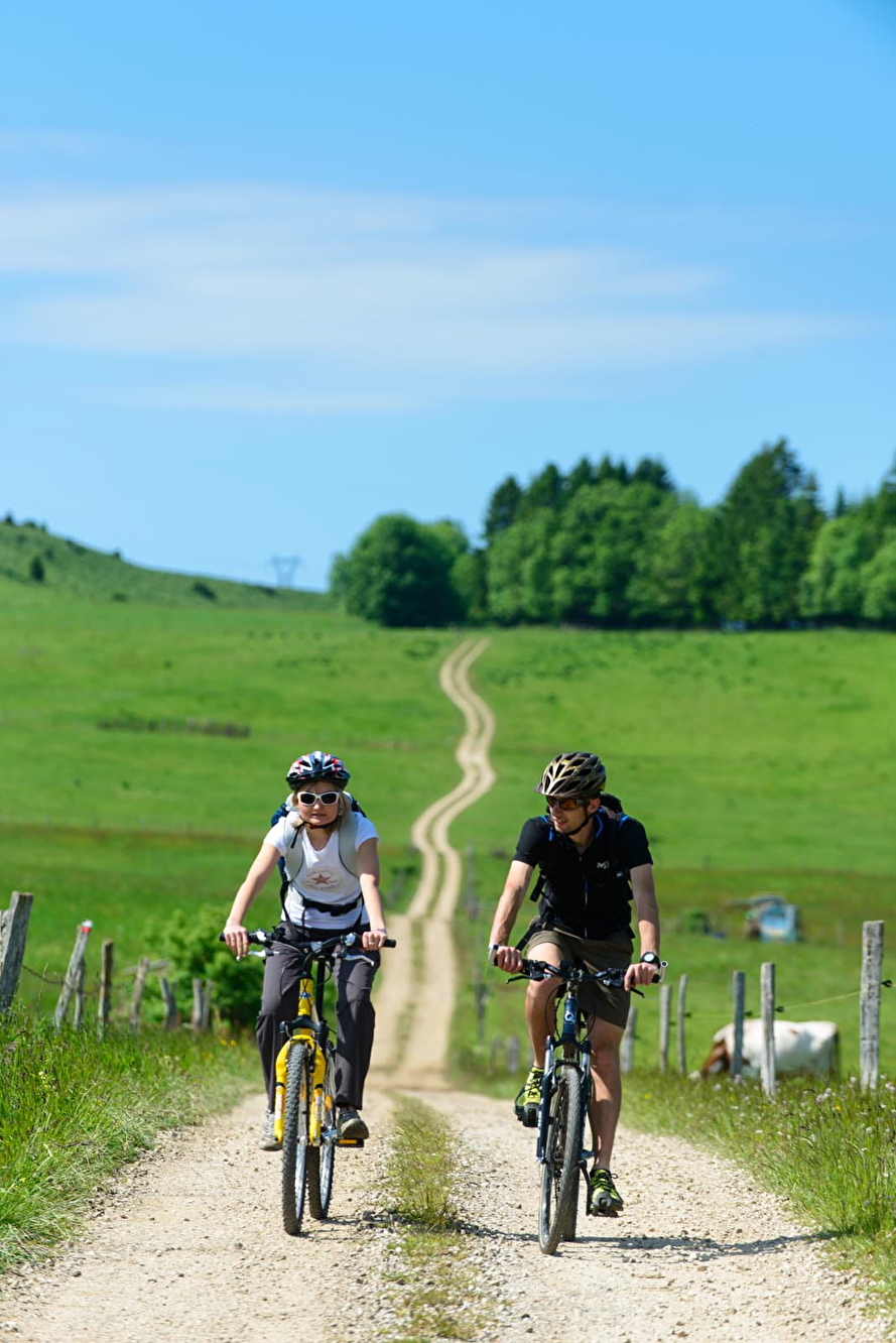 2 vététistes à VTT près des Fourgs Michel JOLY / Bourgogne-Franche-Comté Tourisme