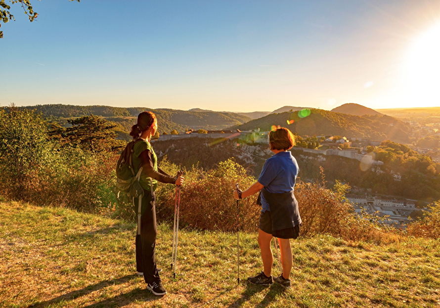 In Pontarlier, capital of the Haut-Doubs, you'll learn all about the history of absinthe. This is where the last section across the Jura mountains begins. On the way, you'll pass by the impressive Château de Joux perched up on a rocky outcrop, which was once the customs checkpoint for the Via Francigena.