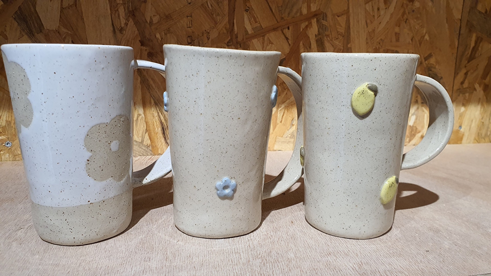 I work with stoneware and engobes (paint). Even if they look the same, each piece is unique because it is made on the wheel and not by casting. That's where the small difference lies.