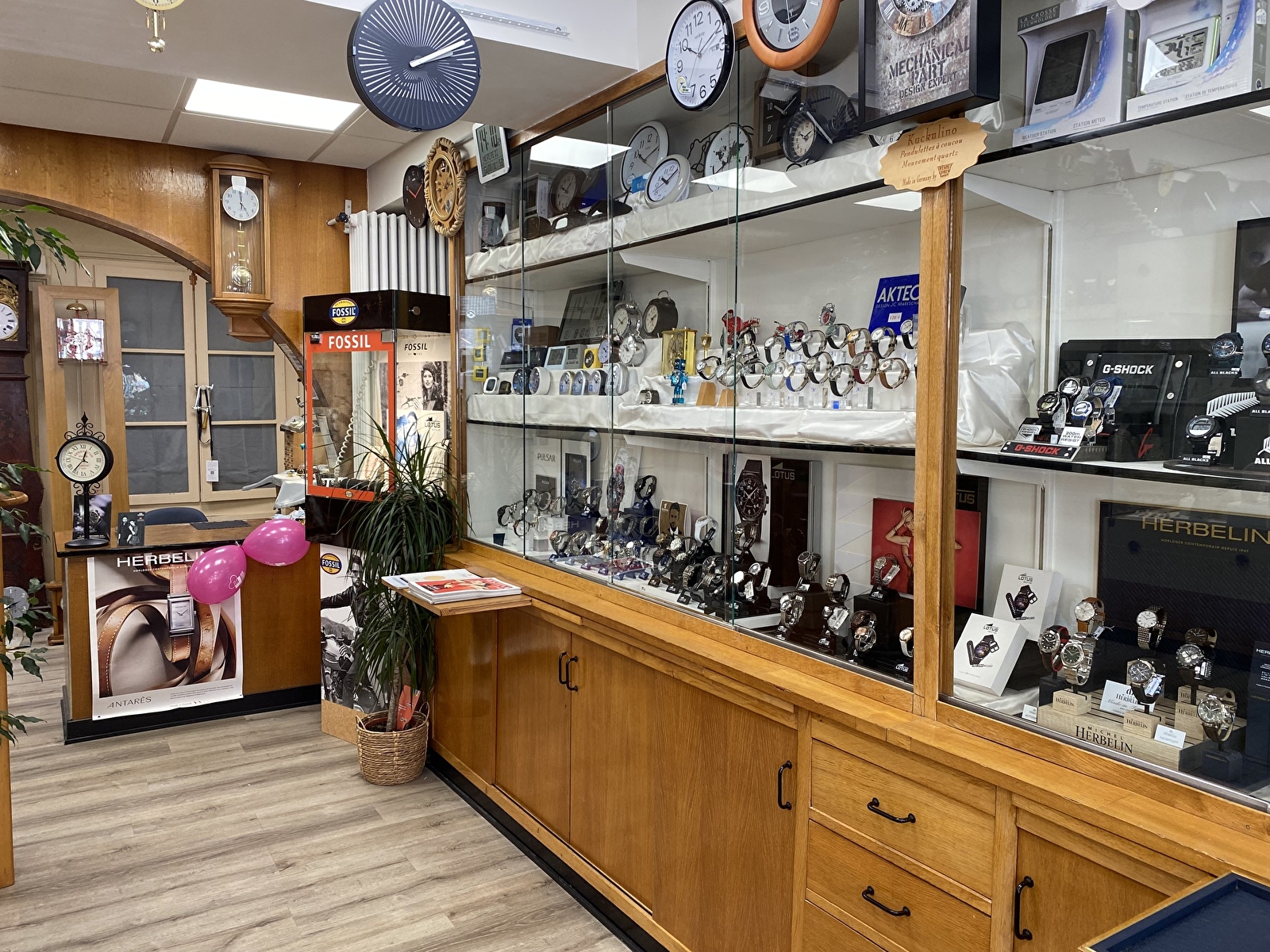 The small medieval town of Nozeroy is well worth a visit in more ways than one, but the L'Art du Temps shop and workshop is undoubtedly one of the must-see attractions. Right in the middle of the Grande Rue, it's hard to pass No. 20 without stopping in front of this shop window, which doesn't have a minimalist shop front: clocks and watches tick happily away, alongside brand-name jewellery and other fancy charms. Something for every taste, at every price. Once through the door... bingo! You're in Ali Baba's cave.