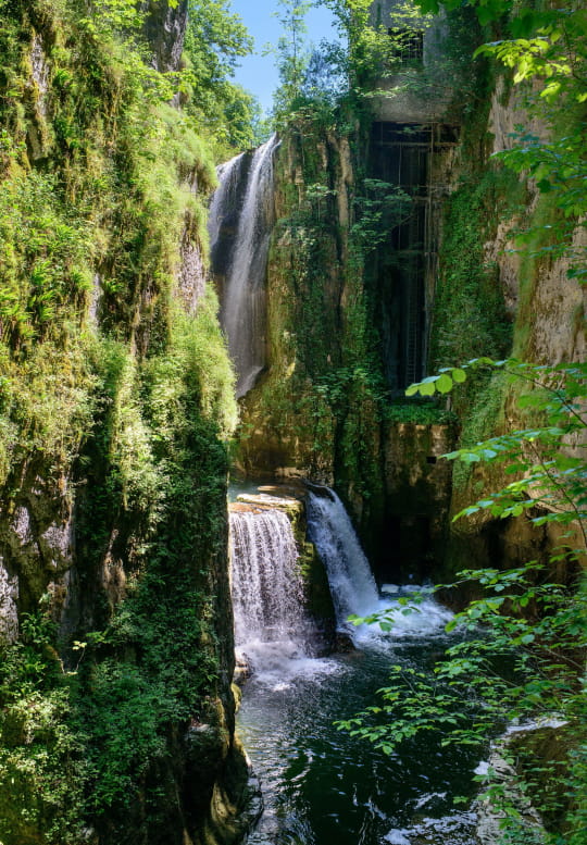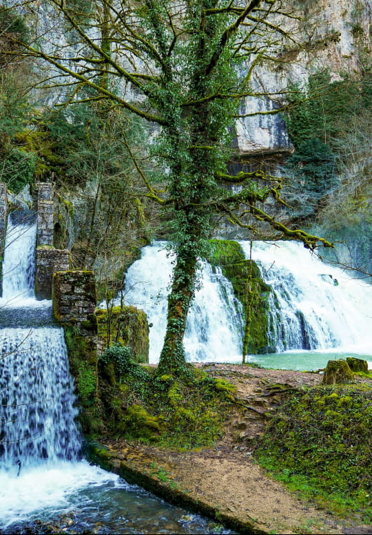 Let's walk at the water's edge in search of the most picturesque waterfalls and sources of the Jura Mountains. You don't have to hike for miles to enjoy the refreshing, restorative powers of nature. The Hérisson waterfalls, the sources of the Loue and Lison rivers, and other natural havens of blue and green are waiting to be found here!