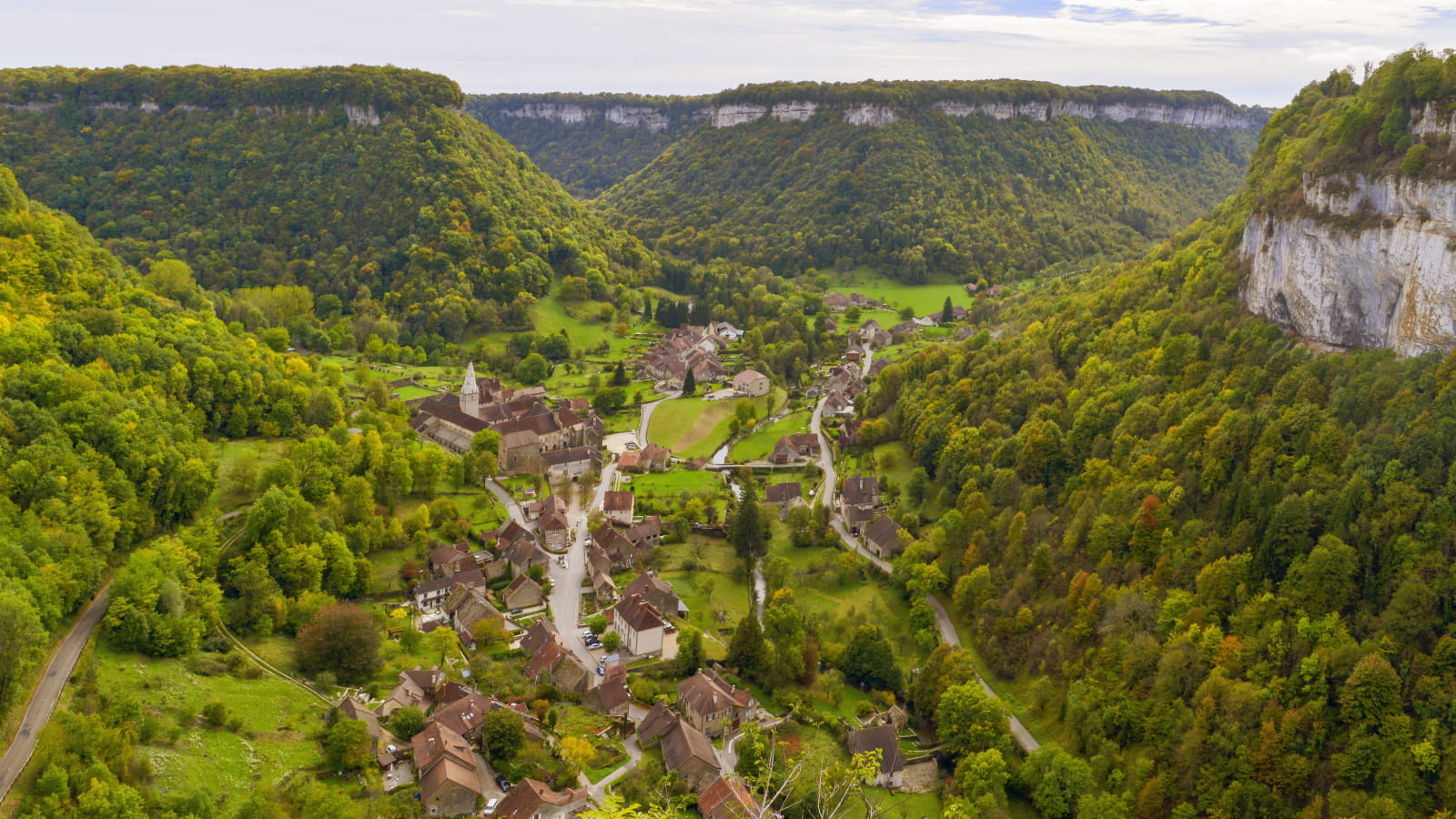 With its protruding rocks, the waterfall of Baume-les-Messieurs, a village of charming character, is a natural treasure lying at the bottom of the steephead valley, and a starting point for multiple hiking trails.