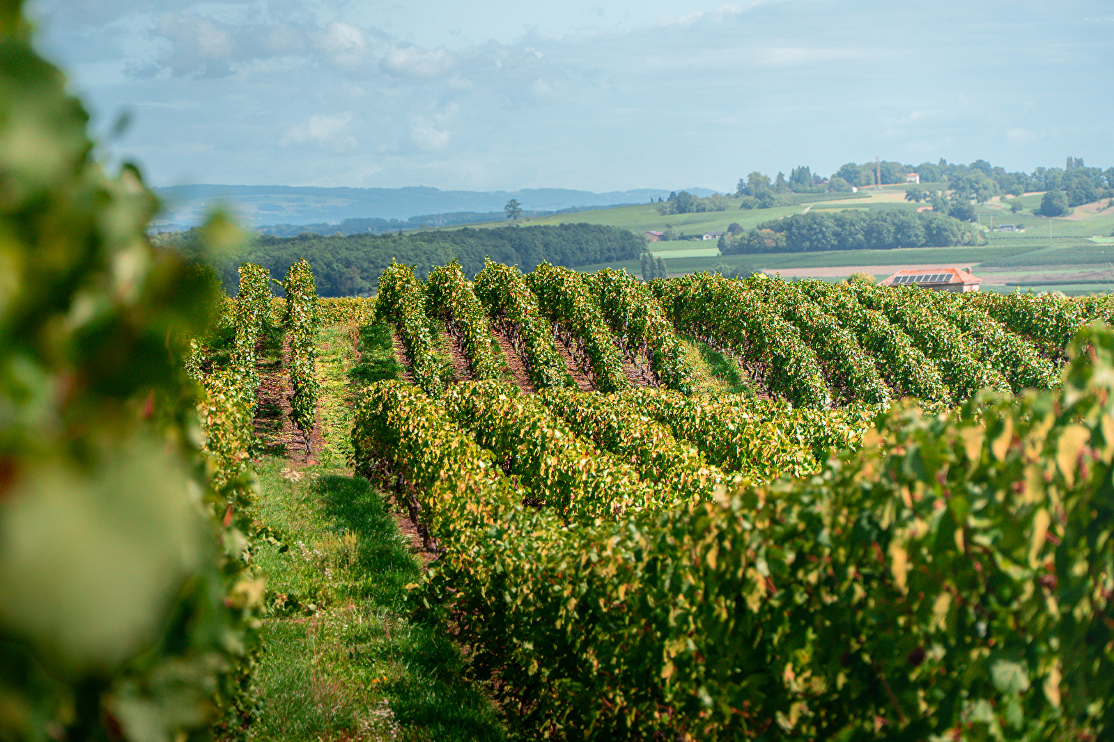 Sun-drenched and ideally situated between the Jura mountains and Geneva, Challex is home to an 8-hectare vineyard that has been fully organic since 2000. Overlooking the Rhône and the canton of Geneva, the south-east facing hillside vineyards are planted mainly with Chasselas, Pinot Noir, Gamay and Pinot Gris, as well as other local varieties such as Altesse, Muscat, Gamaret, Mondeuse and Persan. Here, each grape variety benefits from meticulous care, with traditional practices including hand-picking and rigorous sorting, to produce authentic wines that respect the environment and local tradition.