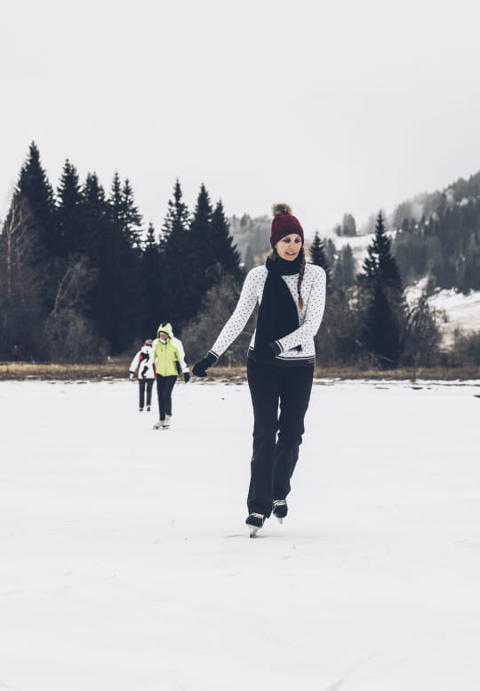 Skating on a frozen lake is always certain to be a unique experience. You don't need to be a champion skater to have fun sliding across one of the many natural ice rinks offered by the massif's frozen lakes!