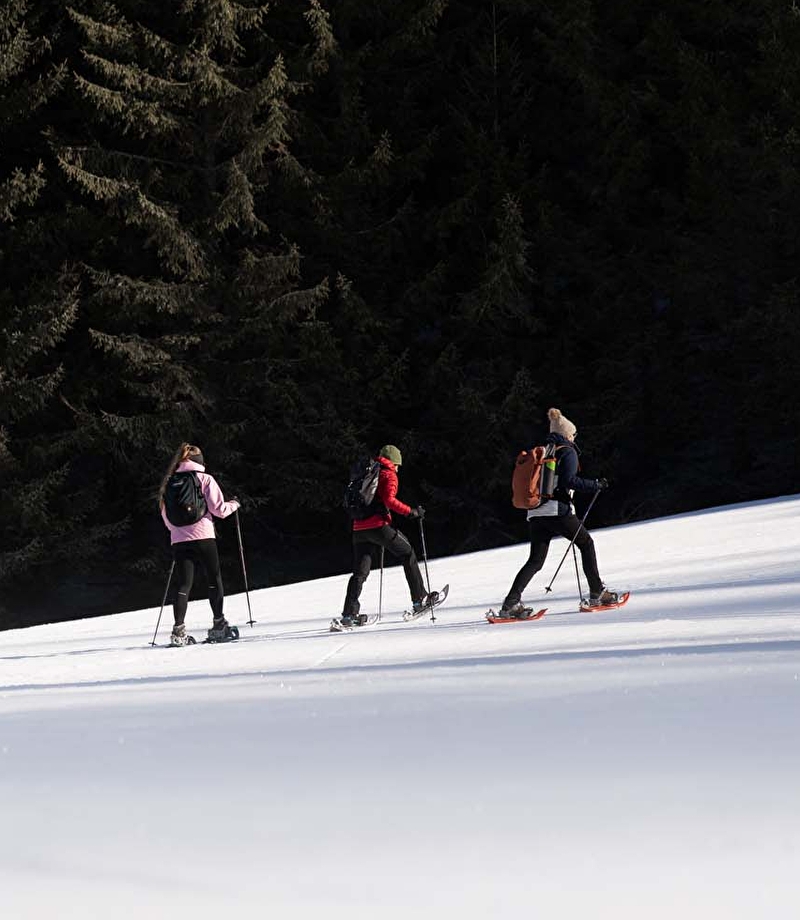 You can reach the waymarked itinerary (12km, 400m elevation range) from the Nordic site of Giron. Snowshoers who are keen to venture into the wilds will love following this succession of glades and snow-covered forests which leads to the Roche Fauconnière panoramic viewpoint!